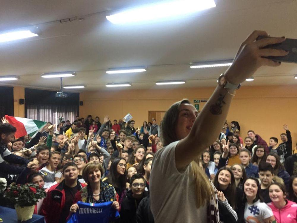 In the morning before the final training session, midfielder Gloria Marinelli met students from Agnone where she grew up. 200 local pupils took part in the event with Tonina Camperchioli and Annalisa Melloni from the local authority. In the afternoon, the Azzurre met the boys and girls who take part in sporting and education activities every Monday organised by the Federal Technical Centre in Castel di Sangro.