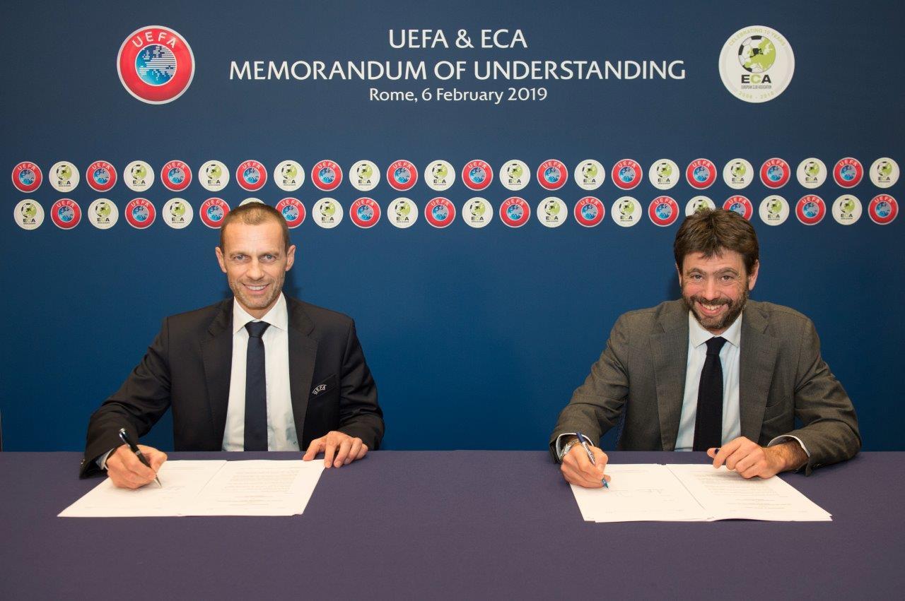 "Continueremo a lavorare a stretto contatto – ha dichiarato Čeferin - per promuovere ulteriormente, sviluppare e modellare il futuro del calcio in tutto il continente. Desidero ringraziare il direttivo dell’ECA e il suo presidente Andrea Agnelli per il modo costruttivo e collaborativo con cui hanno affrontato questo memorandum d'intesa a vantaggio del calcio europeo nel suo insieme".