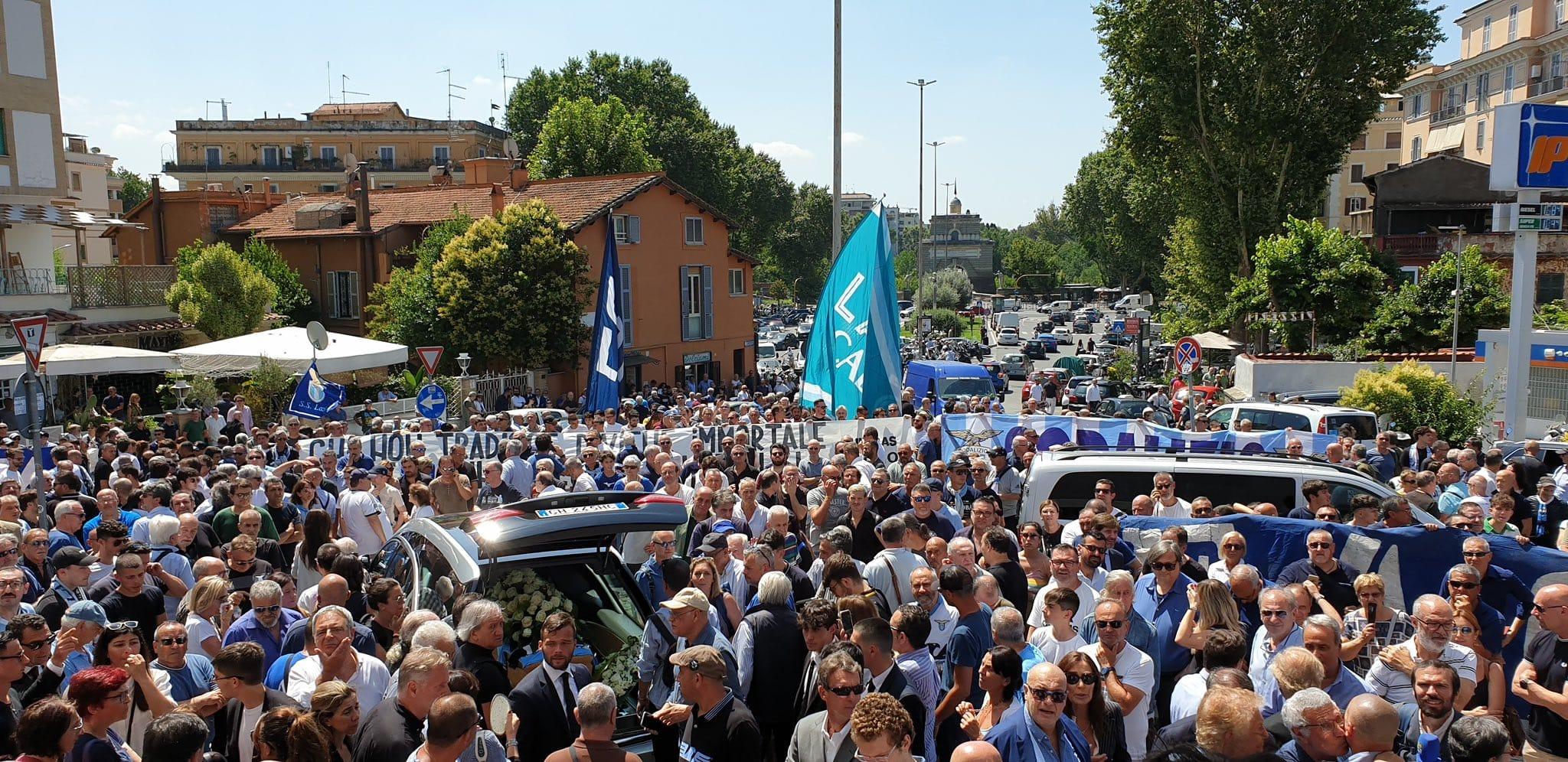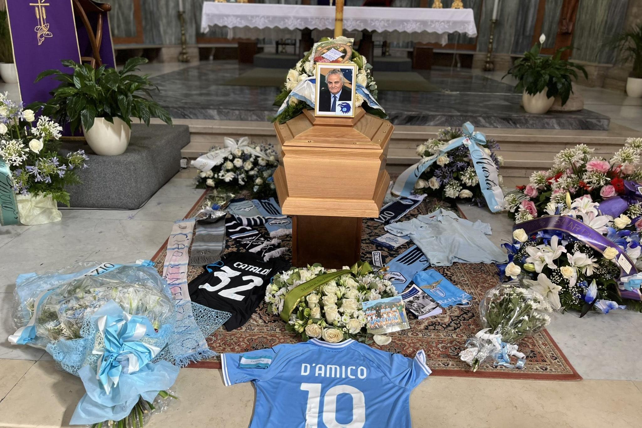 C’erano proprio tutti a salutare Vincenzino. La sua famiglia, gli amici della vecchia guardia, la sua Lazio, e poi loro, i suoi tifosi: più di mille persone hanno colorato di biancoceleste la Chiesa della Gran Madre di Dio, la stessa dove dodici anni fa D’Amico ha pianto la scomparsa di un pezzo importante della vecchia Lazio, Bob Lovati. Tanti i volti noti del mondo del pallone, ex calciatori, dirigenti; ai primi banchi il presidente della FIGC Gabriele Gravina, che ieri aveva reso omaggio al campione scomparso alla camera ardente allestita in Campidoglio. Il gonfalone della Lazio e della FIGC ai lati della bara e tante, tantissime corone di fiori tra cui spicca quella della Roma perché Vincenzino era amato da tutti, la sua simpatia superava i colori e la fede. La piazza di Ponte Milvio piena di sciarpe biancocelesti e di striscioni, mentre qualcuno distribuisce un biglietto con una frase: "Io non volevo essere un giocatore, io volevo essere un giocatore della Lazio". E proprio questo è stato D’Amico.