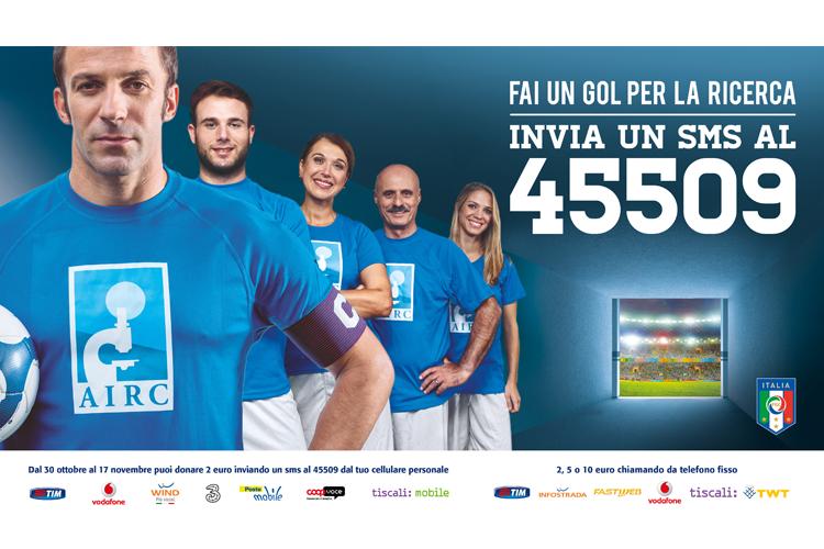 In occasione dell’amichevole con la Romania, in programma allo Stadio ‘Dall’Ara’ di Bologna martedì 17 novembre, gli Azzurri invitano i tifosi a sostenere attivamente i progetti dei giovani campioni della ricerca sul cancro inviando un SMS al 45509*. Il ricavato contribuirà a sostenere il percorso di formazione e specializzazione di giovani ricercatori italiani, dal post-laurea in Italia a periodi di specializzazione all’estero, fino al rientro in Italia dove svilupperanno progetti indipendenti. Durante la gara contro la nazionale romena, una rappresentanza dei 20.000 volontari AIRC porterà sul terreno di gioco lo striscione con il messaggio della campagna.