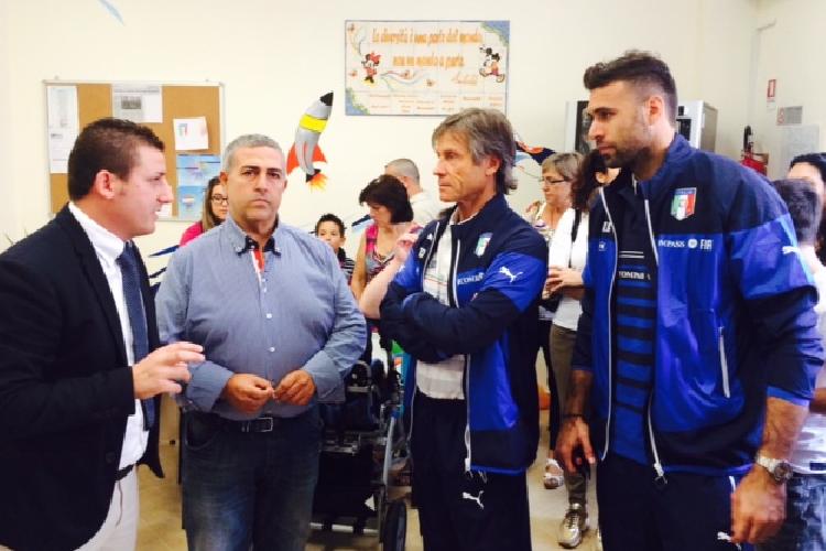 Pomeriggio di festa presso il Centro di Riabilitazione per Disabili a Partinico, dove hanno fatto visita il team manager della Nazionale Gabriele Oriali e il portiere azzurro Salvatore Sirigu. Un incontro pieno di gioia quello con le famiglie e i bambini ospiti di questa struttura: molto festeggiato il portiere azzurro, che a Palermo ha lasciato tanti bei ricordi e che si è prestato volentieri al rito delle foto e degli autografi. Tra i tanti doni portati da Oriali e Sirigu, anche la maglia autografata del portiere.