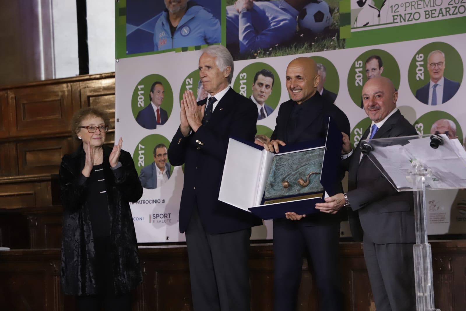 Luciano Spalletti ha ricevuto questa mattina nella Sala dei Baroni presso il Maschio Angioino di Napoli il Premio Nazionale ‘Enzo Bearzot’, giunto alla 12ª edizione e organizzato dall’Unione Sportiva ACLI con il patrocinio della FIGC. "Enzo Bearzot è stata una fonte di ispirazione per la categoria - ha dichiarato il tecnico del Napoli nel corso della cerimonia che sarà trasmessa questa sera alle 23 su Rai 2 - Sento dire che fosse una persona testarda, ma nel suo carattere ci vedo la coerenza di quello che è il suo lavoro e che gli altri pensano di sapere, ma che invece conoscono solo al 50%. È un onore ricevere questo premio".