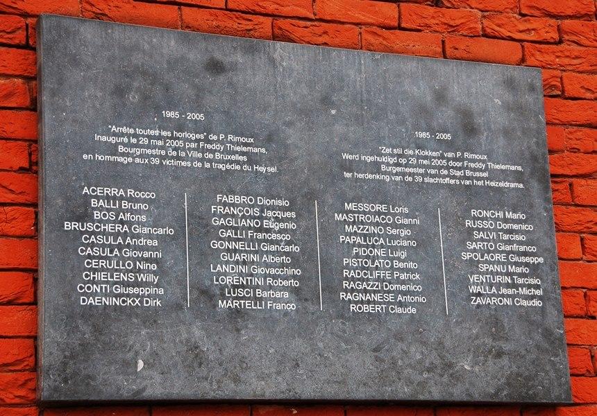 Nel novembre 2015, in occasione di un’amichevole con il Belgio disputata a Bruxelles, la FIGC in accordo con la federazione belga rese omaggio alle vittime della tragedia, con gli Azzurri che deposero una corona di fiori sotto la lapide che riporta i nomi delle persone che persero la vita nella tristemente famosa Curva Z. Insieme ai rappresentanti dell’Associazione dei familiari delle vittime dell’Heysel guidati da Andrea Lorentini, la Federazione ritirò simbolicamente la maglia della Nazionale numero 39, autografata da tutti i calciatori della Nazionale ed esposta al Museo del Calcio di Coverciano.