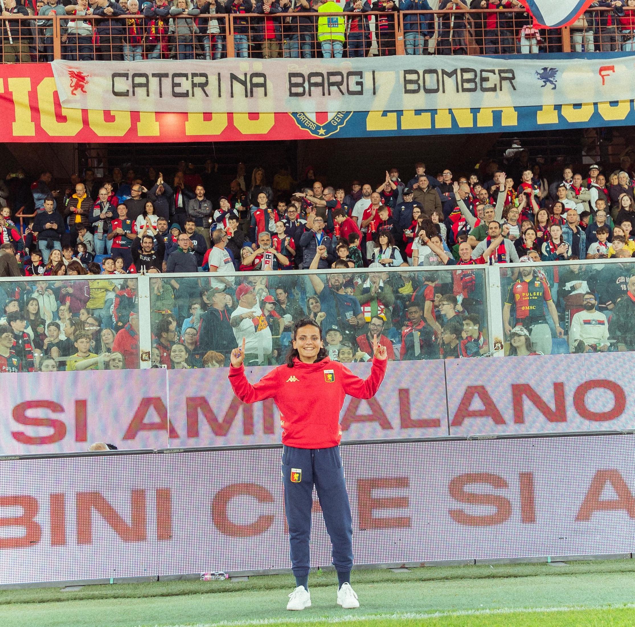 Un solo Genoa, quello che Bargi vive in mille modi ogni giorno: in campo, come allo stadio. "I miei genitori sono abbonati da 55 anni - spiega -. Prima in Gradinata, poi si sono spostati in tribuna, io invece ho fatto il percorso contrario e sono andata in Gradinata. Il campionato spezzatino? Mi piace tantissimo, anche perché mi permette di essere allo stadio il venerdì, il sabato, la domenica sera, il lunedì, ogni volta che non giochiamo noi". Durante l'ultima giornata dello scorso campionato, poi, le ragazze sono state protagoniste del giro di campo, ed è successa una cosa che Caterina mai si sarebbe potuta aspettare. "Ero in Gradinata e, a un certo punto, i miei vicini di posto mi hanno indicato qualcosa in tribuna. 'Cate, hai visto?'. Non capivo, poi ho iniziato a ricevere chiamate da chiunque". C'era uno striscione, "Caterina Bargi Bomber", nel mio stadio, dei miei tifosi. Il giorno più bello della mia vita, perché da sempre sognavo di entrare in campo al Ferraris: l'ho fatto per il giro d'onore, non volevo più uscire. Peccato che la partita doveva ricominciare...".