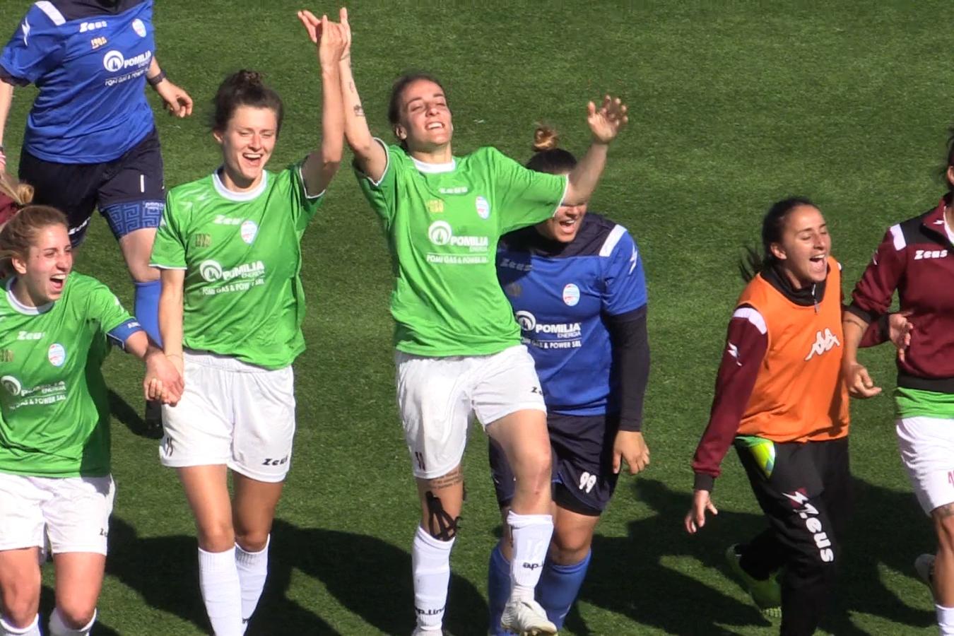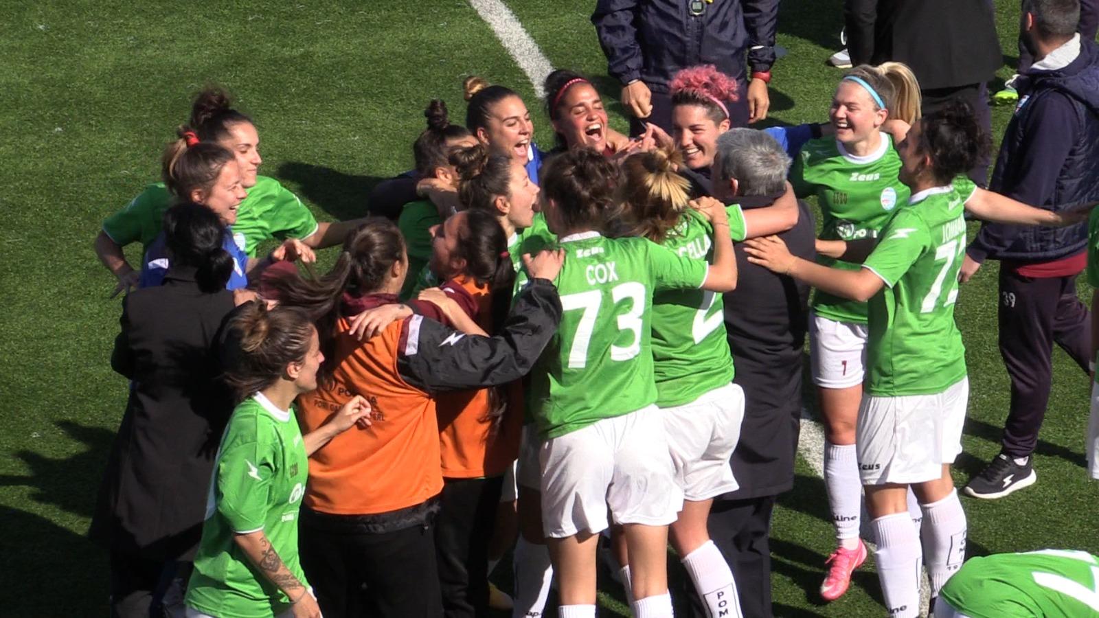 È festa grande in casa Pomigliano: il successo delle campane sul Pontedera (decisiva la rete di Dodds) e la contemporanea sconfitta del Ravenna con la Lazio consentono alle prime della classe di guadagnare la promozione con tre giornate d’anticipo in virtù dei 10 punti di vantaggio sulla formazione romagnola, terza forza del campionato. Con la sconfitta odierna il Pontedera dice invece addio alla Serie B.