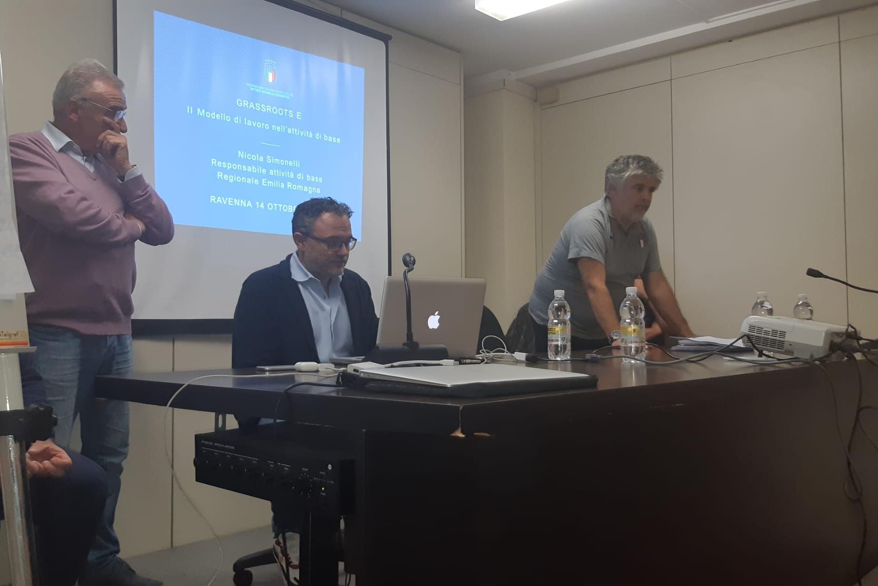 Dopo il saluto del Delegato Provinciale LND di Ravenna Claudio Bissi, la serata è proseguita con gli interventi didattici di Nicola Simonelli, Responsabile Regionale per l’Attività di Base, Jacopo Leandri, C.T. Nazionali Femminili U16 e U23 e Massimo Ricci, Responsabile Tecnico del CTF. di Gatteo a Mare e Responsabile Regionale per l’Attività Femminile.