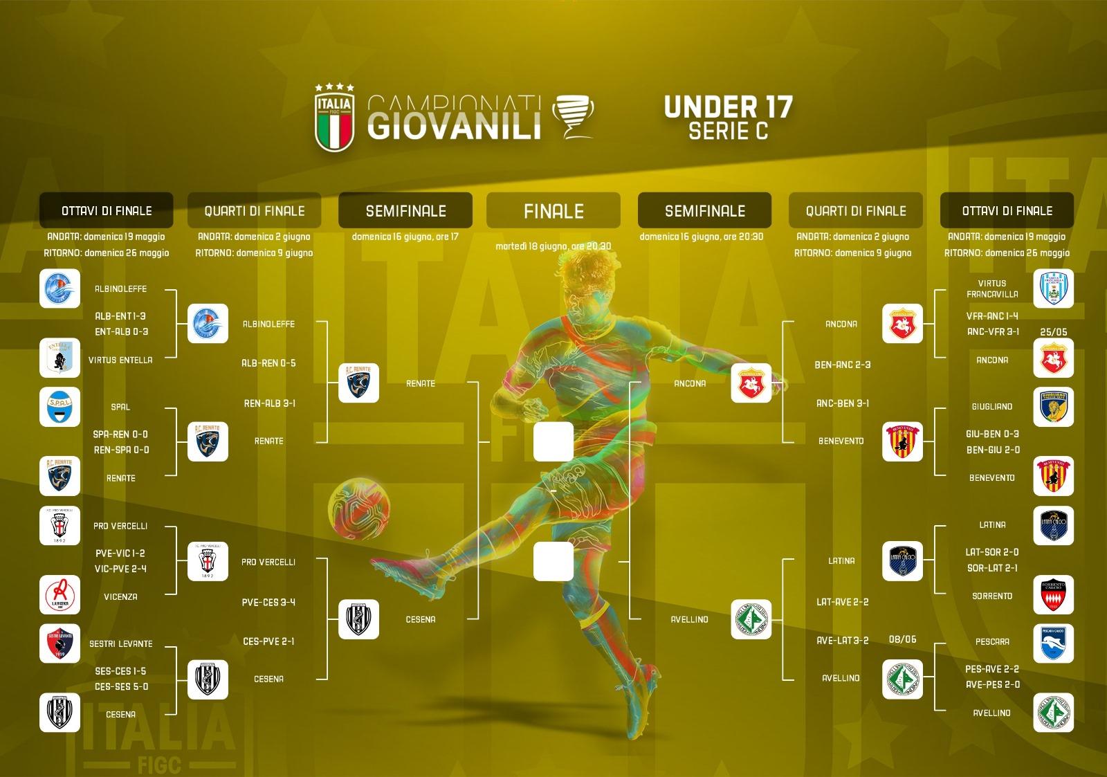 Saranno Cesena e Virtus Entella a giocarsi la finale scudetto del campionato Under 16 di Serie C. Nel torneo Under 17 il Renate si guadagna la semifinale contro il Cesena, mentre l'Ancona sfiderà l'Avellino. Gare d'andata nelle semifinale Under 15, con il successo della Virtus Francavilla sull'Arezzo e il pari tra Pro Sesto e Pergolettese.