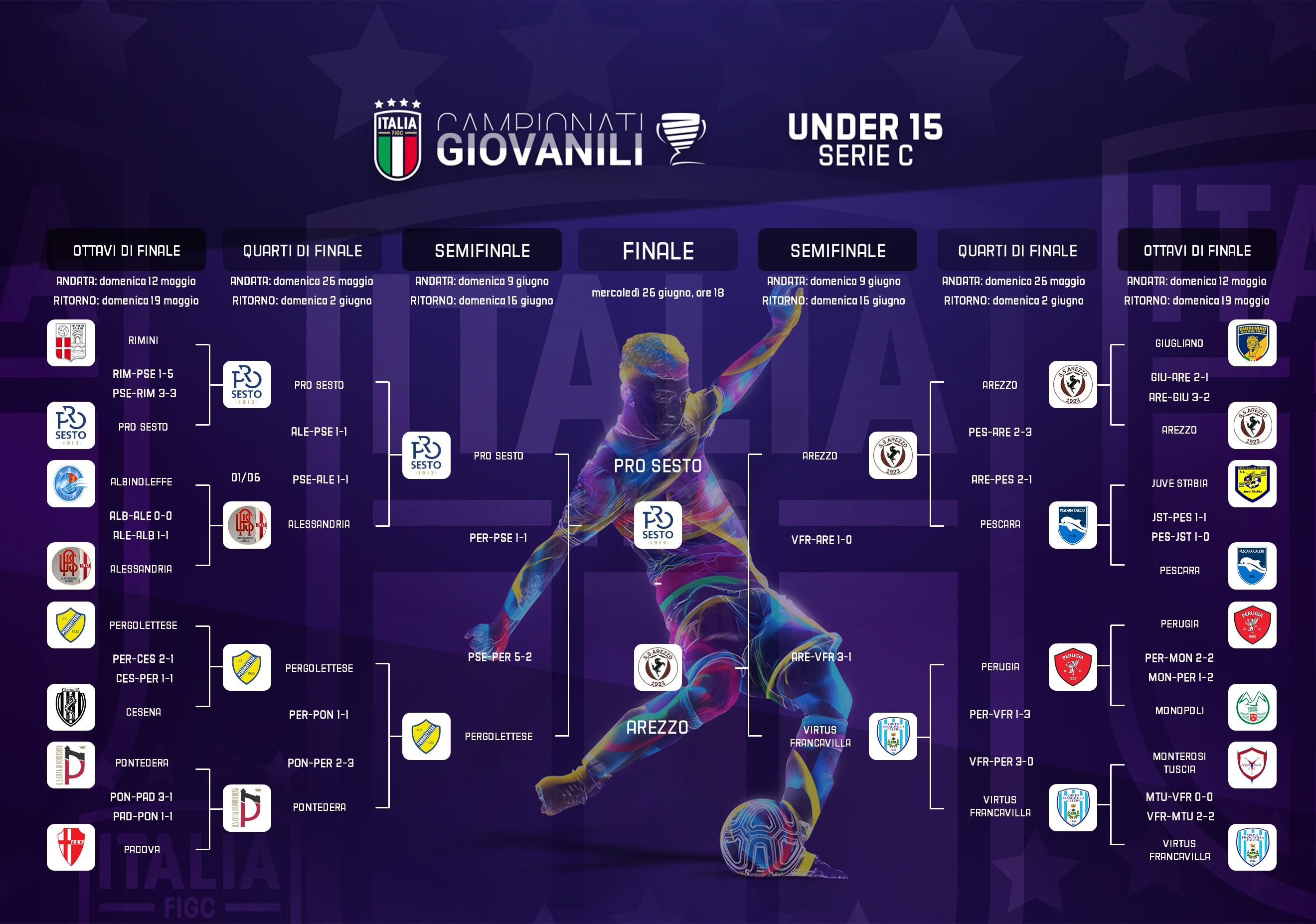 Con le gare di ieri, si sono delineate le ultime finaliste dei campionati giovanili di Serie C, organizzati dalla FIGC e tuttora già in corso nelle Marche. E dopo i match di ritorno delle semifinali Under 15, Pro Sesto e Arezzo, al termine di un percorso di grande pregio, conquistano l'accesso alla finale scudetto del prossimo 26 giugno a Recanati.