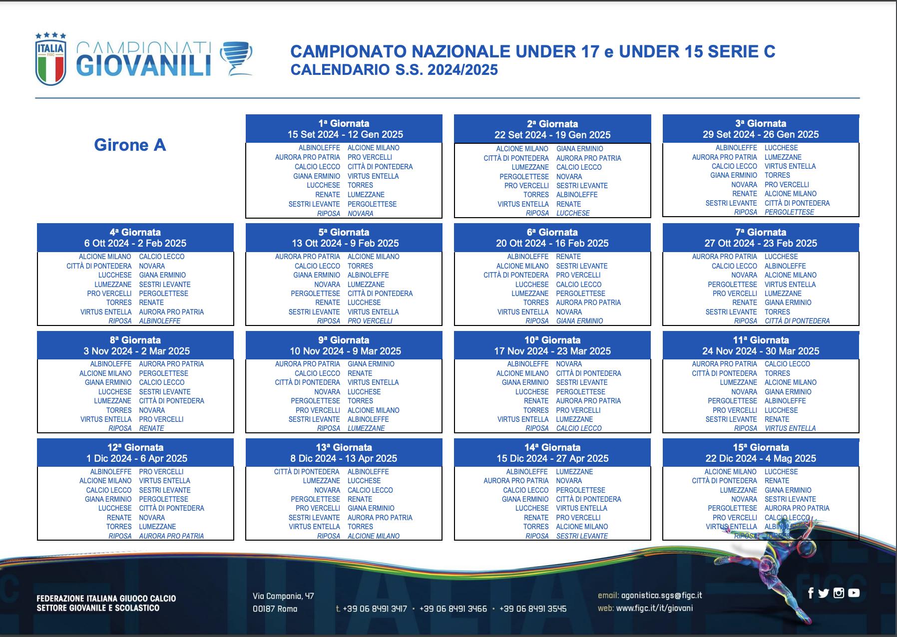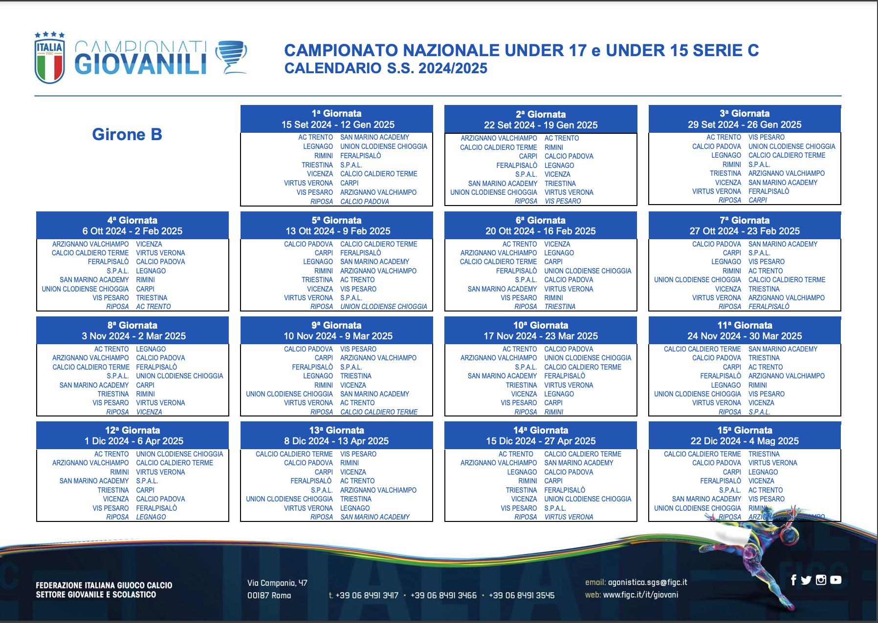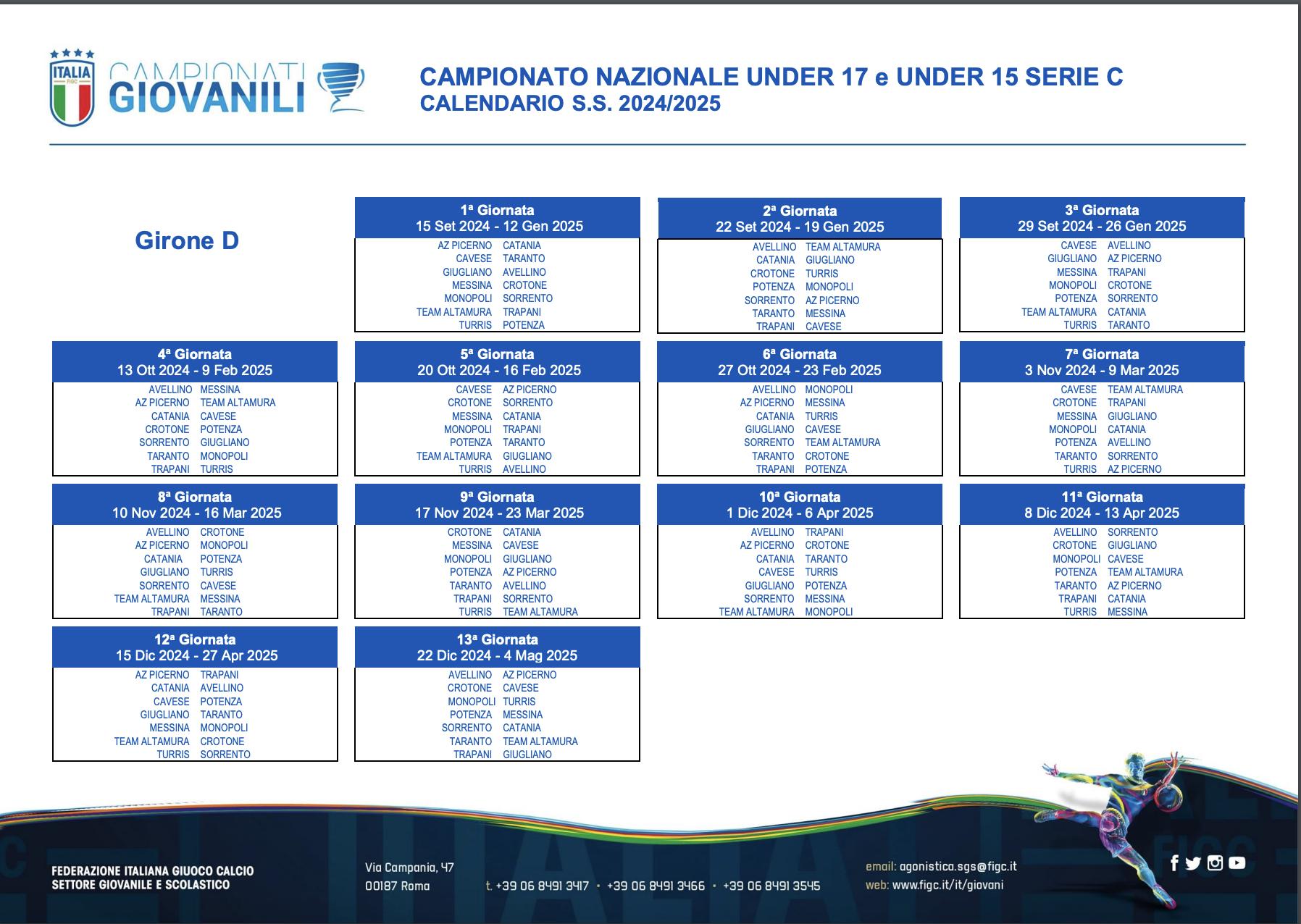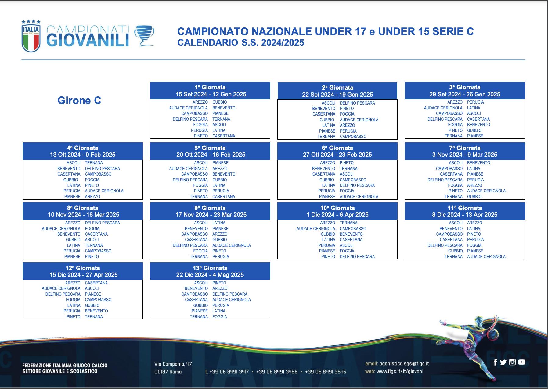 Dopo l'ufficializzazione dei gironi, il Settore Giovanile e Scolastico ha pubblicato i calendari dei campionati Under 17 e Under 15 di Serie C, che prenderanno il via il prossimo 15 settembre.