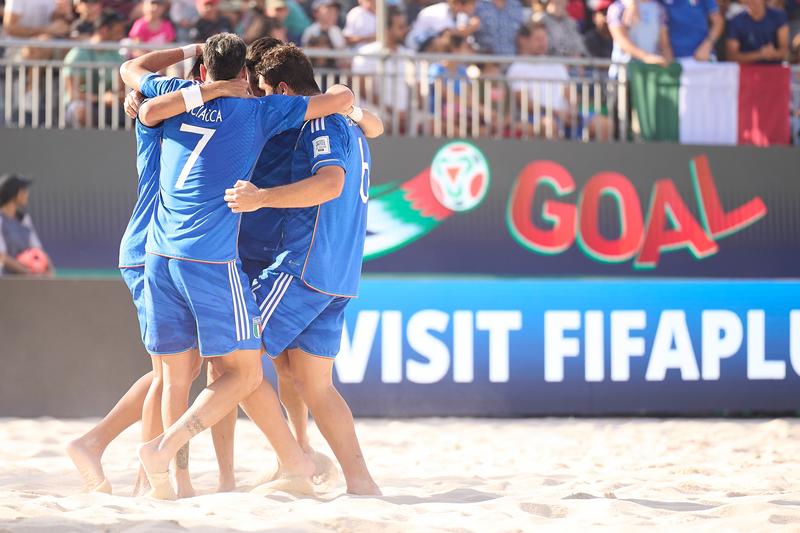 Vittoria con passaggio ai quarti di finale. Nella seconda gara del Mondiale di Dubai, la Nazionale italiana di beach soccer supera con un netto 6-2 l’Egitto attraverso una prestazione convincente e corale. I gol arrivano infatti tutti da marcatori diversi: segnano Sciacca e Bertacca nel primo tempo, Miceli e Josep (eletto man of the match per la seconda gara consecutiva) nella ripresa, Fazzini e Giordani nell’ultima frazione. Una vittoria che permette ai ragazzi di Del Duca di restare a punteggio pieno in testa al girone e staccare il pass per i quarti di finale vista anche la vittoria al supplementari degli Emirati Arabi sugli Stati Uniti. La classifica dice infatti Italia 6, Emirati Arabi 5, con USA ed Egitto a 0. Lunedì 19 alle 16.30, in diretta su RaiSport, l'ultima gara del girone vale il primo posto nel Gruppo A, che permettere di incrociare la seconda del Gruppo B, attualmente guidato da Tahiti.