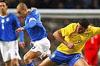 Altri tredici minuti e al 26’ gli uomini di Dunga raddoppiano: cross di Ronaldinho, Robinho ruba palla a Pirlo che tenta di uscire dall’area palla al piede e compie la sua magia con un sinistro alle spalle di Buffon. Gli Azzurri sono in difficoltà in fase difensiva e in attacco si vedono poco, a parte un collo esterno da fuori area di De Rossi, che Julio Cesar devia in angolo. A parziale discolpa il gol realizzato dopo 3’ minuti di gioco da Grosso, ingiustamente annullato, che poteva indirizzare l’incontro su altri binari.