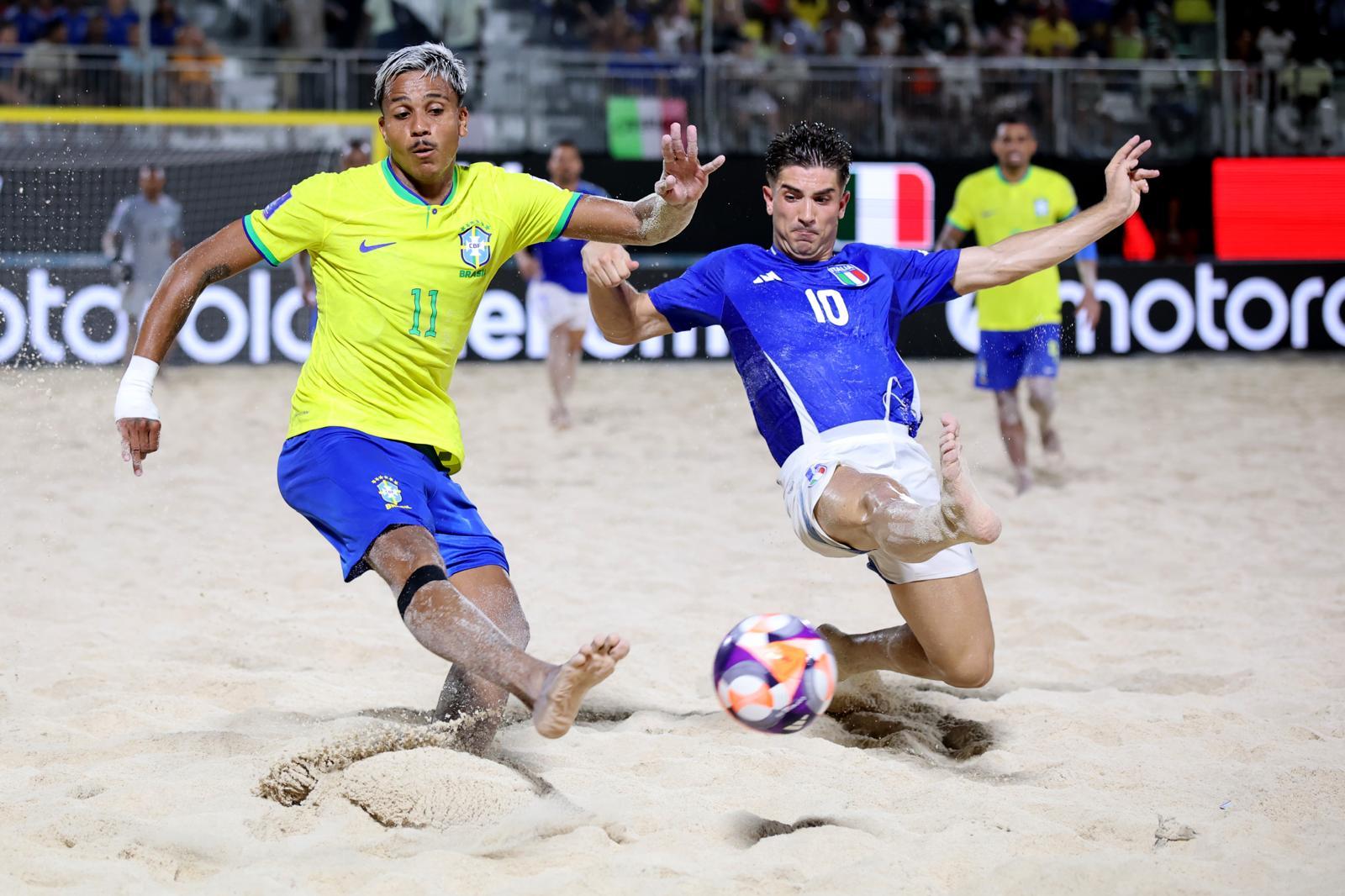 Non è cambiato nulla, o quasi, nei piani della Nazionale di beach soccer. L’obiettivo di andare fino in fondo al Mondiale 2025 che si sta giocando alle Seychelles rimane tale: la sconfitta di ieri sera con il Brasile (2-1, in quella che è stata la partita più bella vista fin qui nella fase a gironi della Paradise Arena) nella seconda giornata del Gruppo D, non ha spostato di una virgola le ambizioni dei ragazzi di Del Duca che, anzi, sono usciti dai 36’ con la rinnovata consapevolezza di valere, se mai ci fosse bisogno di ulteriori conferme dopo la finale di un anno fa a Dubai, il massimo livello internazionale: l’Italia c’è e rimane una delle squadre pretendenti ad alzare la coppa al cielo di Victoria. Guai, però, a guardare troppo avanti e ‘sentirsi arrivati’, perché le insidie del girone non sono ancora finite e il pass per accedere alla fase a eliminazione diretta, dunque ai quarti di finale, bisogna ancora andare a prenderlo. Domani, alle ore 13 (diretta RaiSport) Italia-El Salvador deciderà il futuro di Zurlo e compagni.