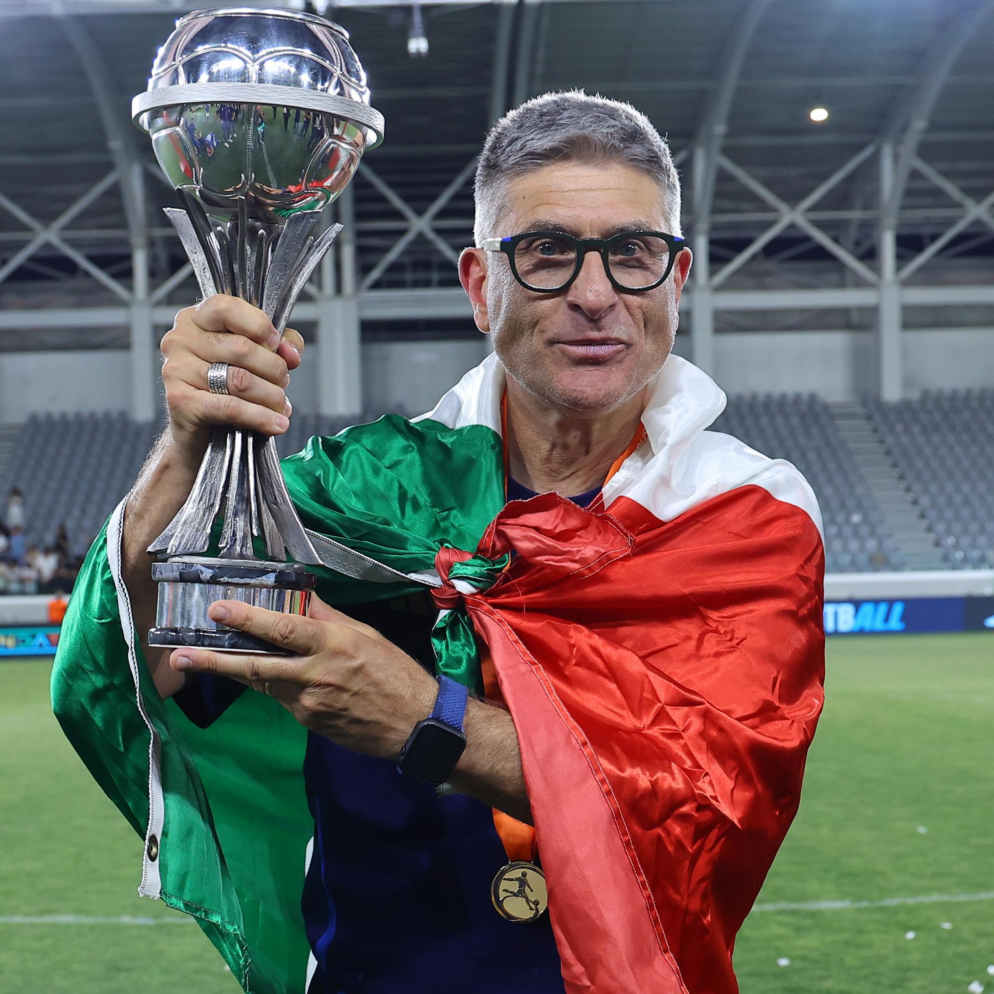 FLORENCE, ITALY - JANUARY 21: Massimiliano Favo manager of Italy U17 gestures during the International Friendly match between Italy U17 and Spain U17 on January 21, 2025 in Florence, Italy. (Photo by Gabriele Maltinti - FIGC/FIGC via Getty Images) *** Local Caption *** Massimiliano Favo