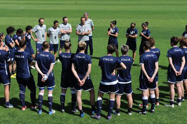 Con una doppia seduta di lavoro è iniziata a Novarello la preparazione della Nazionale Femminile in vista della gara di giovedì 13 febbraio a Novara con la Repubblica Ceca (calcio d’inizio alle ore 15), quarto match delle qualificazioni alla Coppa del Mondo di Canada 2015. Ventuno sono le Azzurre a disposizione del tecnico federale Cabrini, che ha sostituito in queste ore l’infortunata Marchitelli, portiere del Brescia, con Asteggiano (Cuneo).