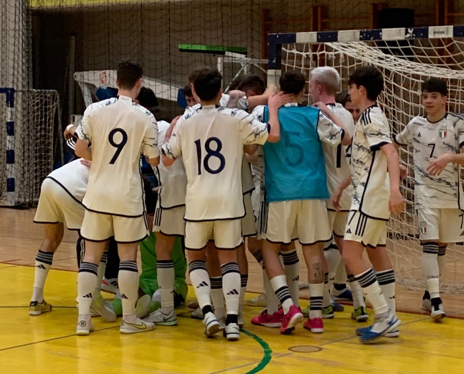 Era una prova di maturità e la Nazionale Under 19 di futsal l’ha passata a pieni voti. Di fronte ai "cugini" francesi, già avversari dell’Italia dell’ultima fase finale dell’Europeo di categoria lo scorso settembre a Jaén in Spagna, Schettino e compagni si impongono con un netto 2-0 conquistando l’aritmetica certezza del primo posto in classifica, che equivale alla vittoria del torneo con una giornata d’anticipo. Decisivo un super primo tempo, chiuso avanti 2-0 grazie ai gol di Scalavino e del solito Salvetti. Domani mattina, alle ore 11, in diretta sulla pagina Facebook B4 Slovenia, l’ultima sfida della Umag Nations Cup 2023 contro la Slovenia, penultima del girone.