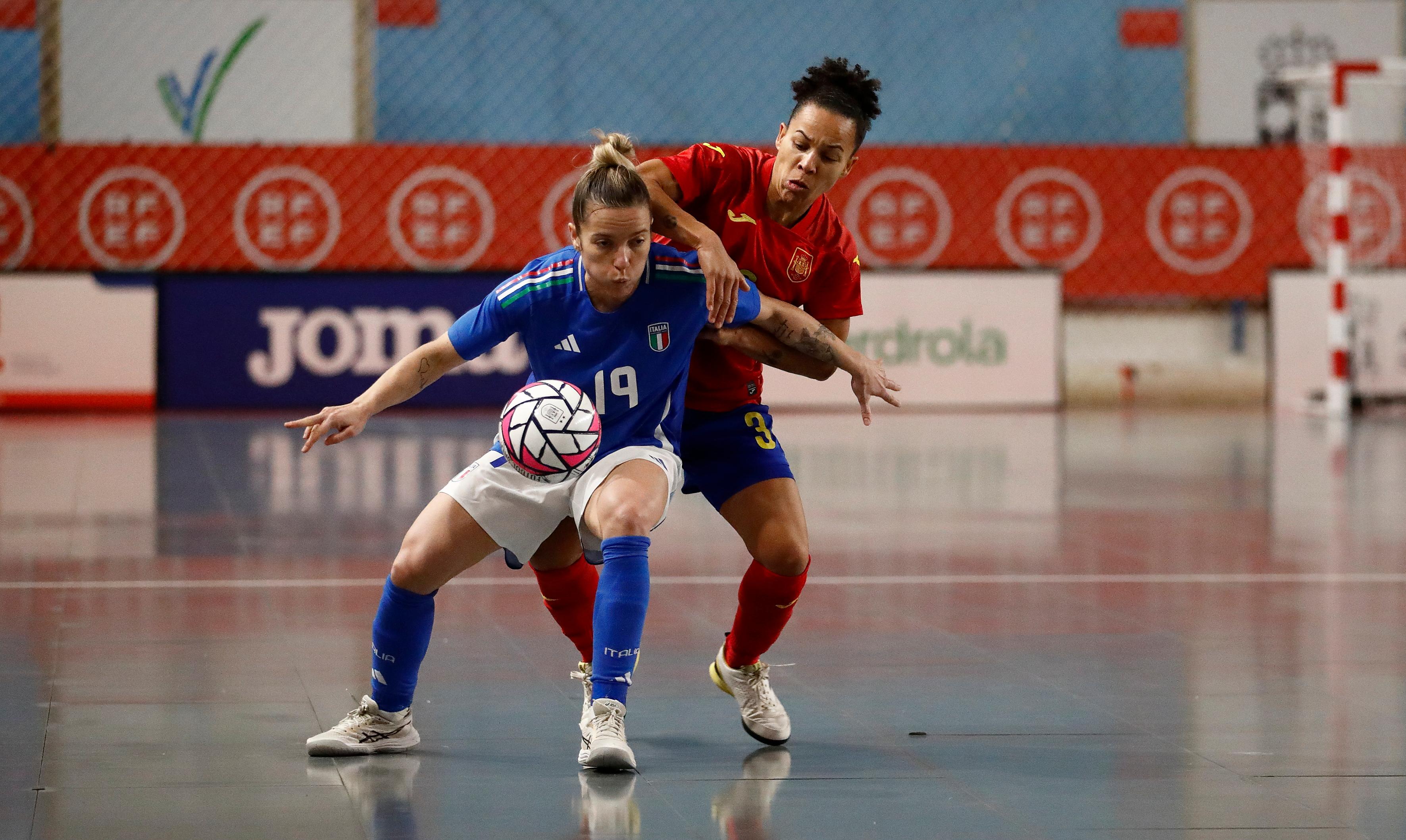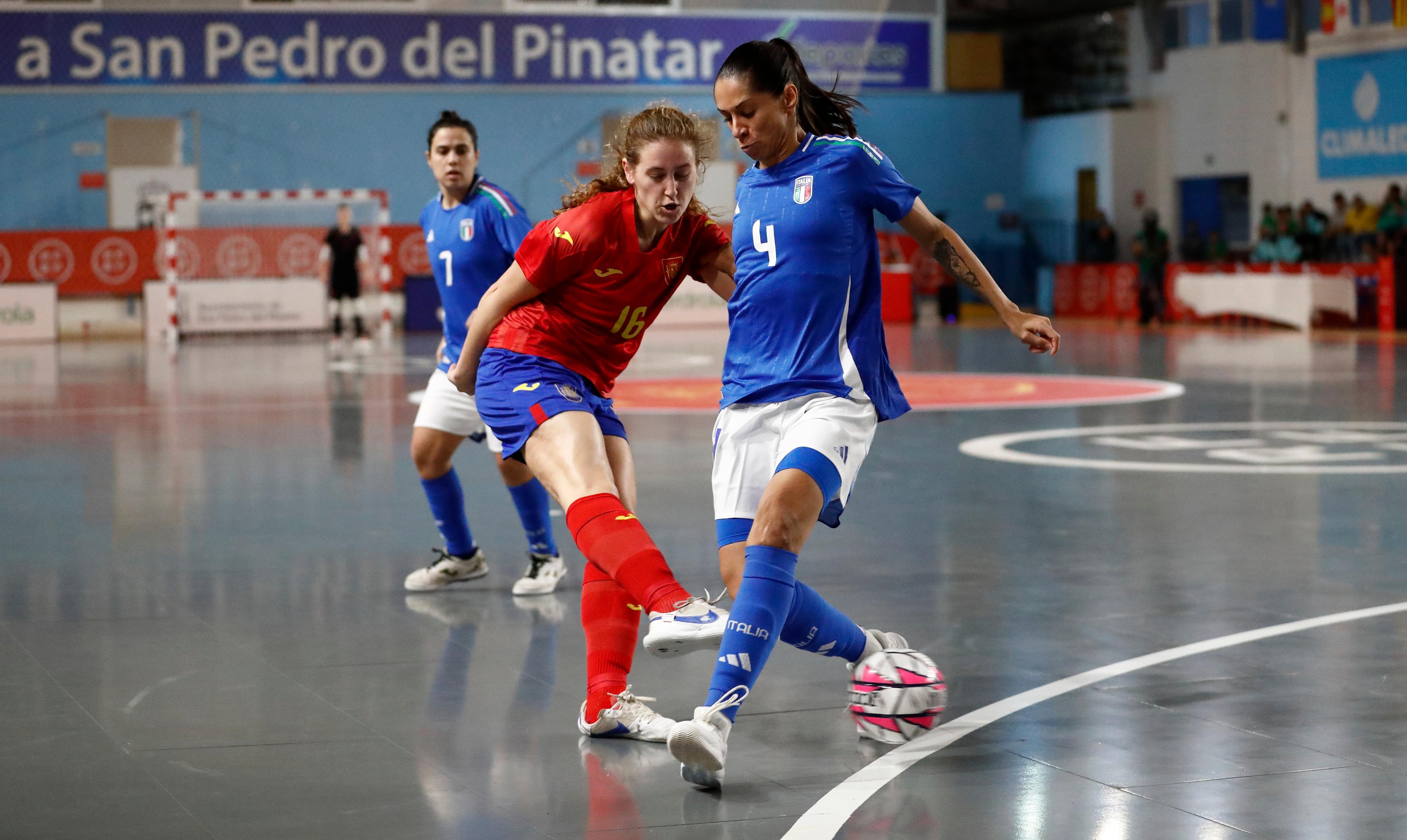 SECONDO TEMPO. Dopo lo 0-0 dei primi 20’, nella ripresa le padrone di casa provano ad aumentare il forcing e l’Italia stringe i denti abbassandosi nella sua metà campo. Dopo due minuti Celia ha una buona occasione ma non la sfrutta, idem qualche minuto più tardi Vane Sotelo con un destro poco potente sul primo palo. Passano i minuti e al giro di boa del secondo tempo, esattamente come nel primo, la Spagna continua a creare un volume di gioco notevole ma sbatte su un Italia tostissima in fase difensiva che concede poco alle Furie Rosse. Serve un episodio per ‘stappare’ il match e arriva al minuto 15: la Roja approfitta di un calcio di rigore concessole, Peque viene ipnotizzata da Sestari ma il tap-in premia - in maniera anche fortuita - Vane Sotelo per l’1-0. Passa un altro minuto e il fallo di Boutimah ‘regala’ un tiro libero alla Spagna: dai 10 metri Antia è perfetta e la Spagna raddoppia nel giro di un amen. È il gol del ko: Salvatore prova a mettere il portiere di movimento negli ultimi 4’ ma la rete che potrebbe riaprire la partita non arriva.