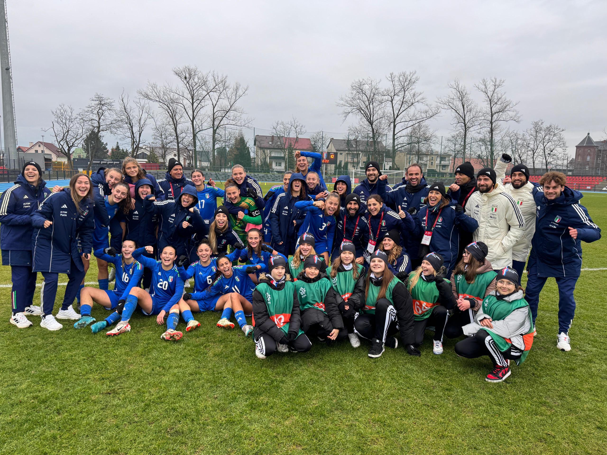 ITALIA (3-4-3): Mustafic: Pieri, Gemmi, Gallo (dal 19’st Cocino); Tironi, Fadda (dal 19’st Cherubini), Testa, Pizzuti; Pellegrino Cimò (dal 1’st Ventriglia), Ferraresi (dal 1’st Gallina), Perselli. A disp: Belli, Sciabica, Tosello, Consolini. All: Matteucci.