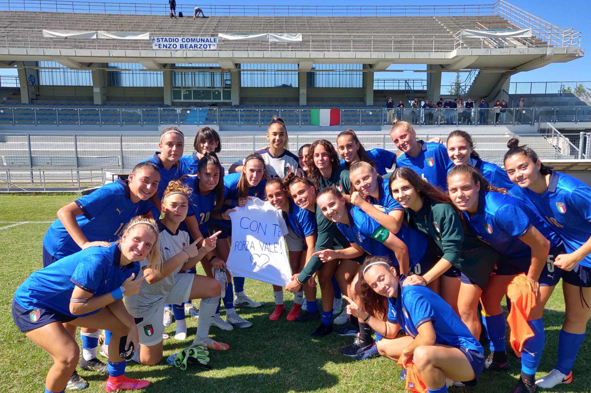 Dopo il pirotecnico 4-3 di due giorni fa, la Nazionale Under 19 Femminile ha vinto 2-1 anche la seconda amichevole con l’Austria disputata questa mattina allo stadio ‘Enzo Bearzot’ di Gorizia. Un successo che le Azzurrine hanno voluto dedicare a Valentina Gallazzi, la centrocampista della Roma infortunatasi seriamente nella prima sfida con le pari età austriache. L’Italia è stata brava a reagire al vantaggio iniziale dell’Austria, andata in gol dopo solo tre minuti sugli sviluppi di un calcio d’angolo con il capitano Anna Holl, ribaltando il risultato nella ripresa grazie alle reti di Anita Maria Cochis e Nicole Arcangeli.