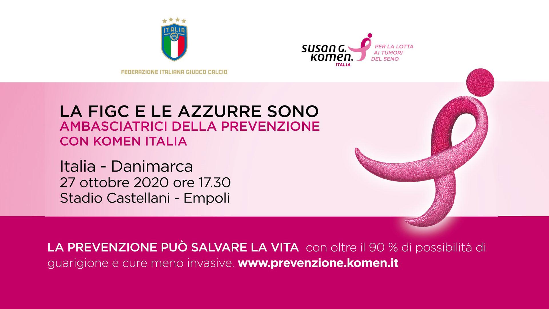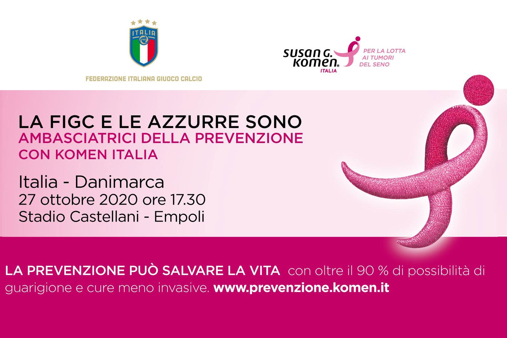 Anche quest’anno la FIGC è in prima linea nella lotta ai tumori del seno. Oggi, in occasione del match di qualificazione ad Euro 2022 contro la Danimarca, in programma alle 17.30 allo stadio ‘ Carlo Castellani’ di Empoli, le Azzurre sosterranno la campagna di Komen Italia per ribadire l’importanza della prevenzione e della diagnosi precoce.