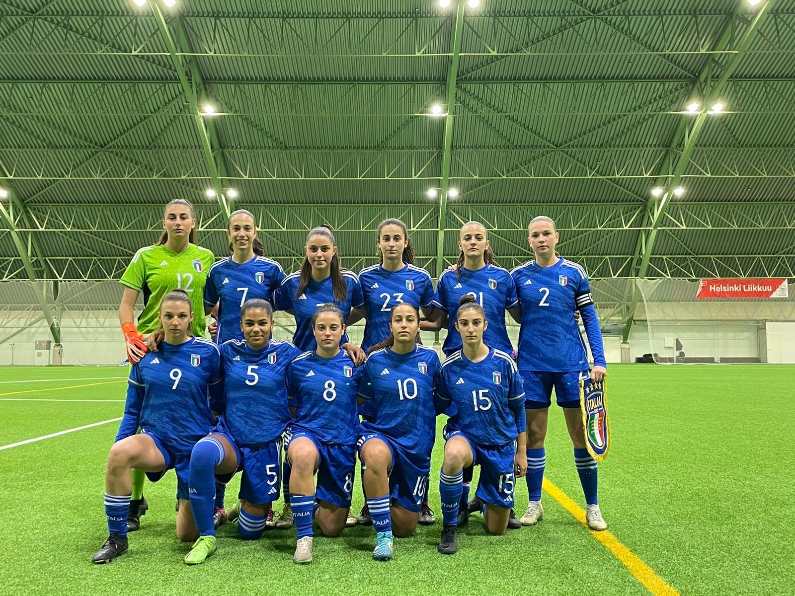 Due su due. Dopo il 5-0 di venerdì, la Nazionale Under 17 Femminile ha battuto (3-1) la Finlandia anche nella seconda amichevole giocata (al coperto) alla Tali Football Hall di Helsinki. Un successo meno netto nel punteggio rispetto a 48 ore fa, ma ugualmente convincente per le ragazze di Jacopo Leandri, che venerdì a Nyon conosceranno le avversarie nel Round 2 di qualificazione all'Europeo, il secondo e ultimo step (in programma a marzo) e che porta alla fase finale. A segno, per le Azzurrine, Giulia Galli (Roma), Gabriella Langella (Napoli) nel primo tempo e Anna Copelli (Juventus) nella ripresa.