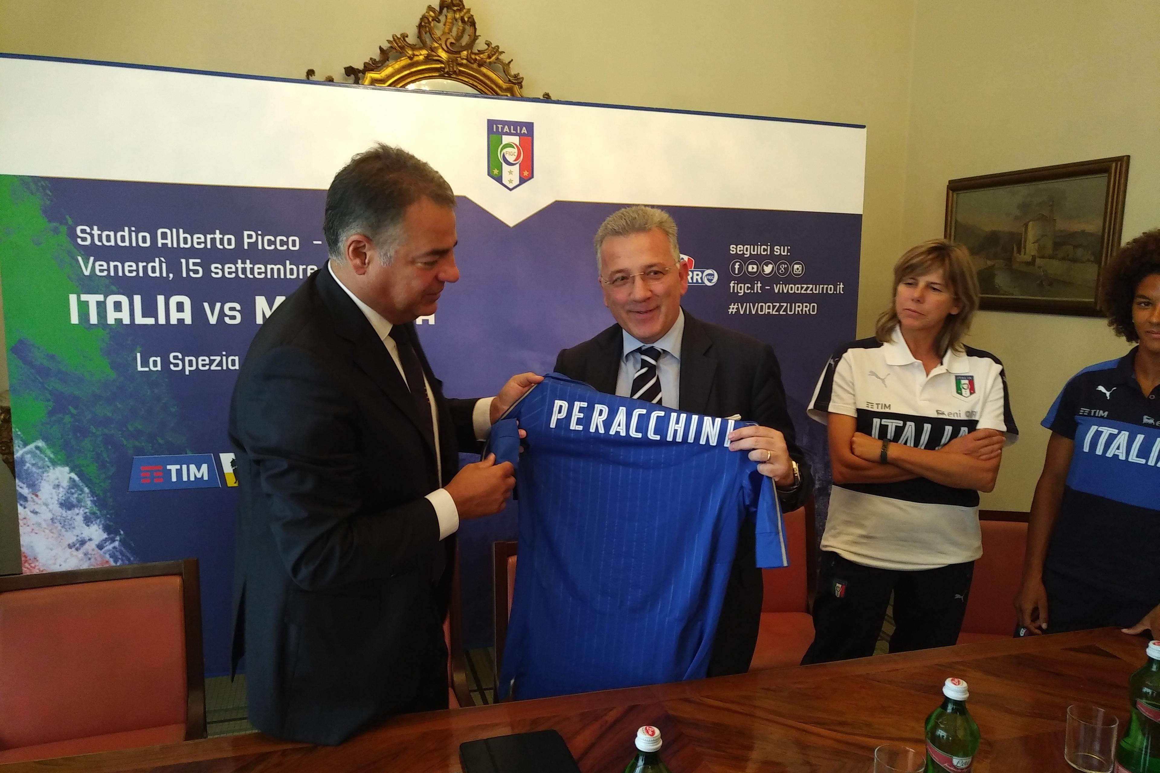 Parte dalla Spezia il cammino della Nazionale Femminile verso il Mondiale di Francia 2019. Lo stadio “Alberto Picco” della città ligure ospiterà infatti domani la prima gara di qualificazione contro la Moldavia (ore 20.30 - diretta su Rai Sport), gara presentata questa mattina nella sede del Comune nel corso di una conferenza stampa alla quale hanno partecipato il Sindaco Pierluigi Peracchini, l’Assessore allo Sport Lorenzo Brogi, il CT Milena Bertolini, il Responsabile Organizzativo delle Nazionali Giorgio Bottaro e il capitano azzurro Sara Gama.