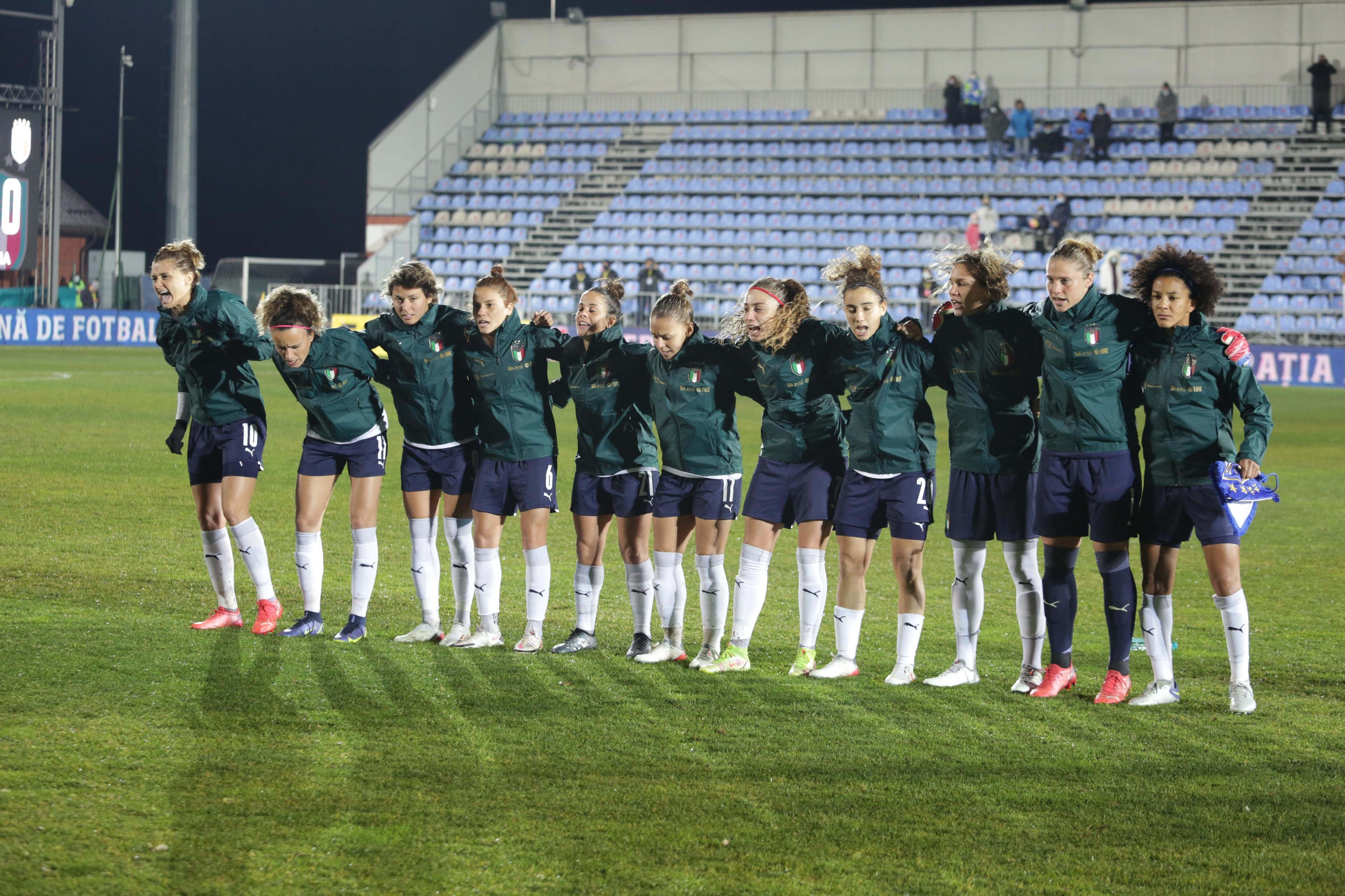 ITALIA (4-4-2): Giuliani; Soffia, Gama (66’ Salvai), Linari, Boattin; Glionna, Giugliano (76’ Cinotti), Simonetti, Bonansea (89’ Serturini); Giacinti (66’ Pirone), Girelli. A disp.: Durante, Schroffenegger, Bergamaschi, Lenzini, Merlo, Pandini, Bonfantini. Ct: Bertolini