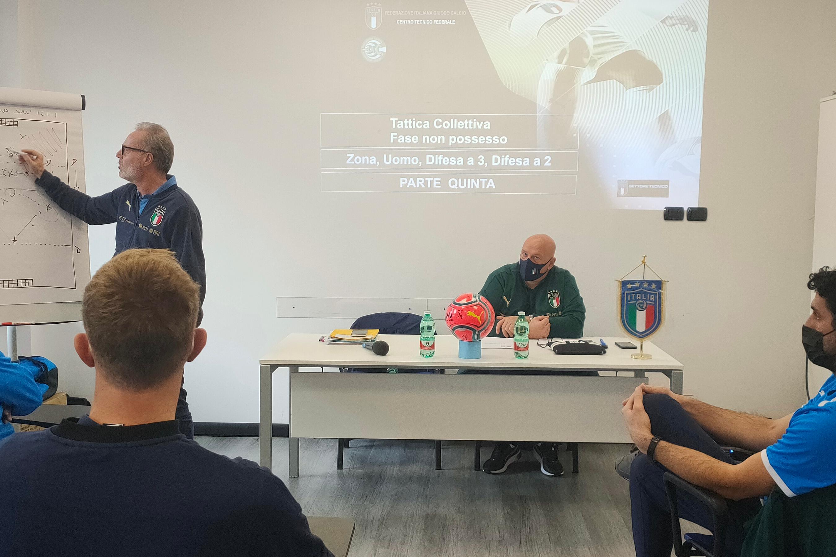 Nelle foto: dei momenti di studio in aula e sul campo; il Ct Del Duca. Le immagini sono utilizzabili inserendo come Credits: Figc