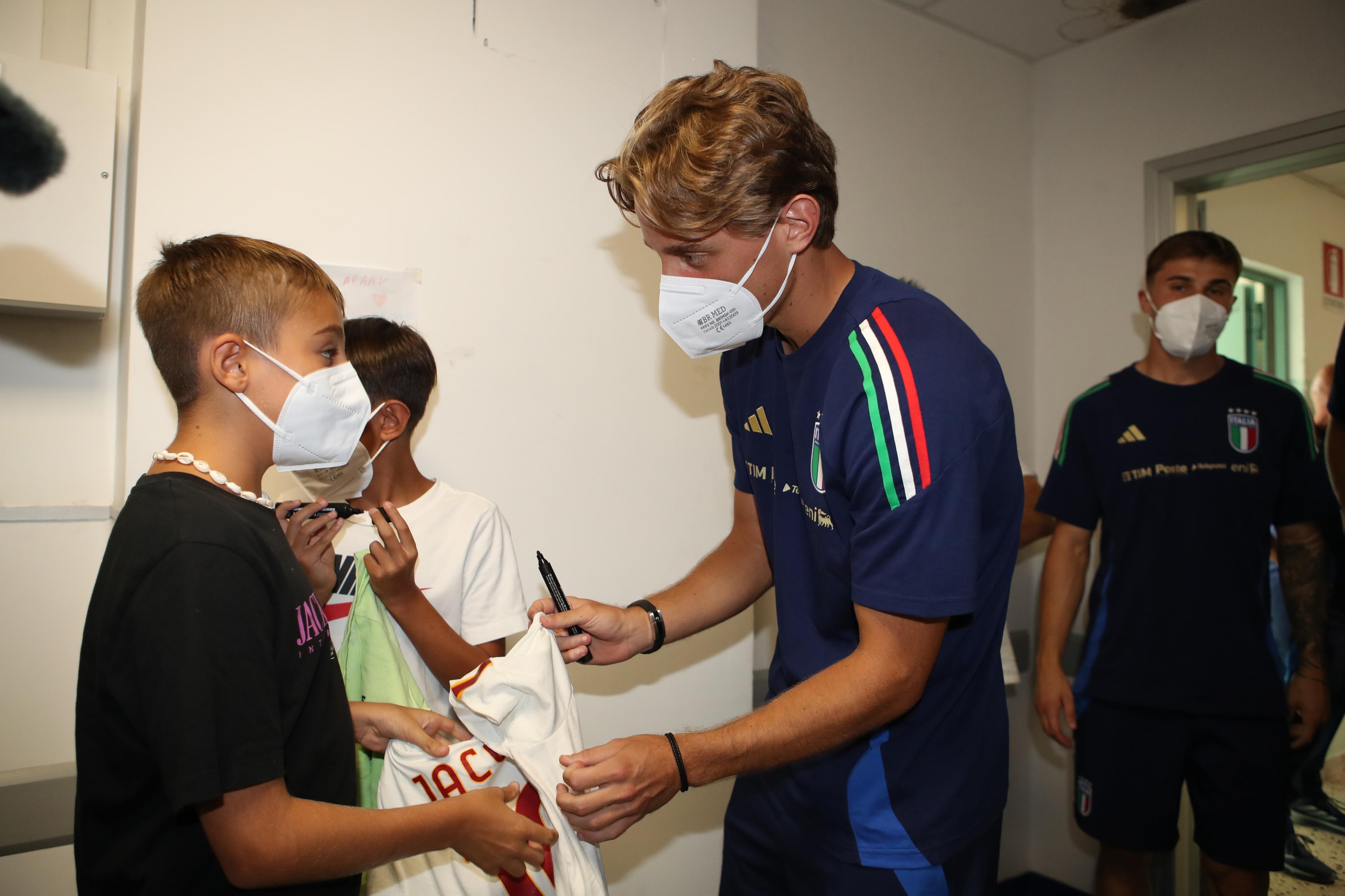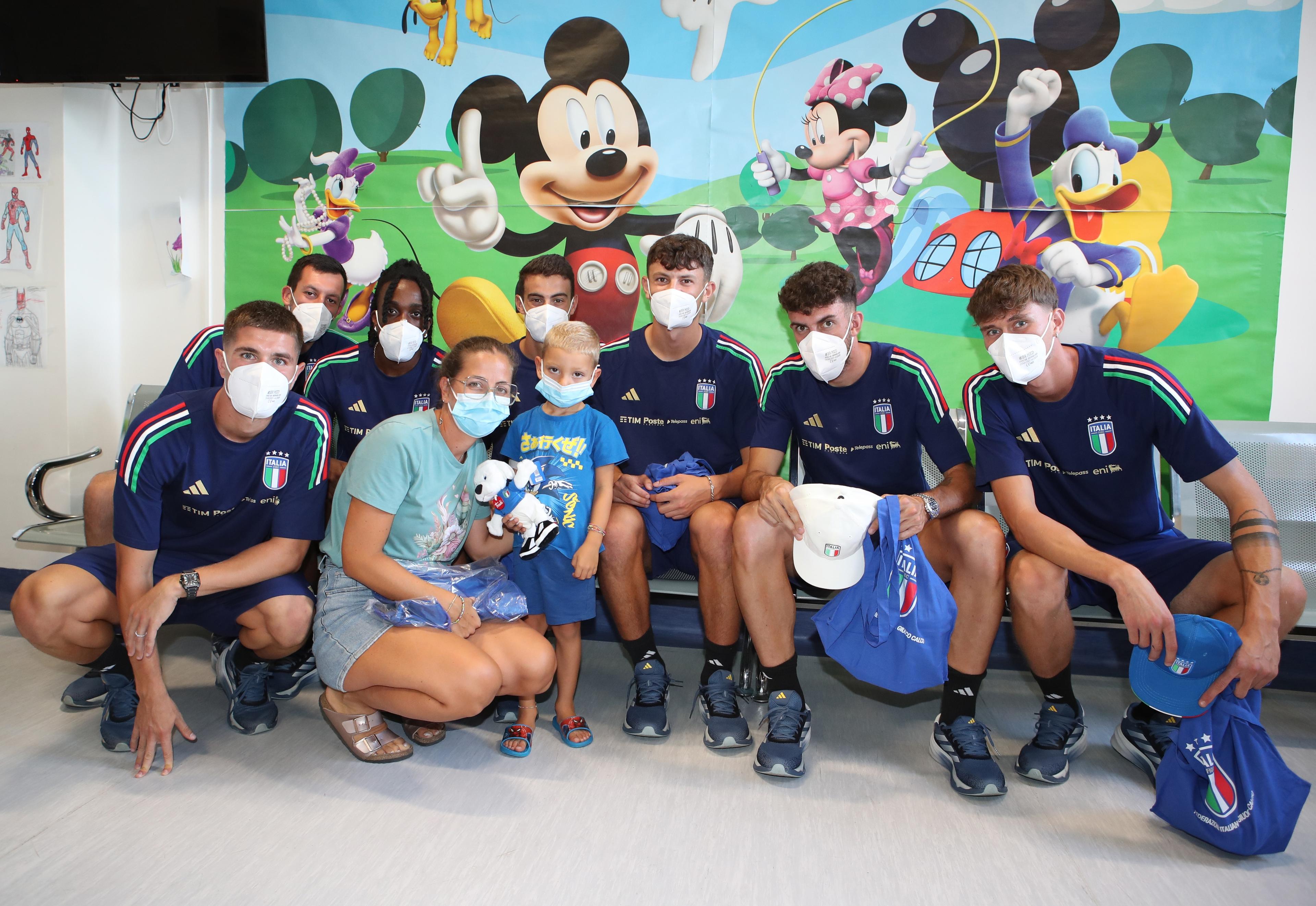 Ed è proprio per questo motivo che la Nazionale Under 21, accompagnata dall'Assessore allo Sport, al Turismo e all'Ambiente della Regione Lazio Elena Palazzo, dal Sindaco di Latina Matilde Celentano e dal Commissario Straordinario della Asl di Latina Sabrina Cenciarelli, ha deciso di fare tappa all'ospedale dopo aver preso confidenza con il terreno di gioco nel walkaround. I 26 giocatori e lo staff si sono intrattenuti per circa mezzora nei corridoi e nelle stanze di degenza, firmando autografi e scattando foto con i bambini, molti di loro con maglie della Nazionale e dei club e pennarello in mano, concludendo la visita nella sala ludica per scattare alcune foto in compagnia dei piccoli tifosi e delle loro famiglie, vicine 24 ore al giorno ai loro figli in questo momento di sofferenza.