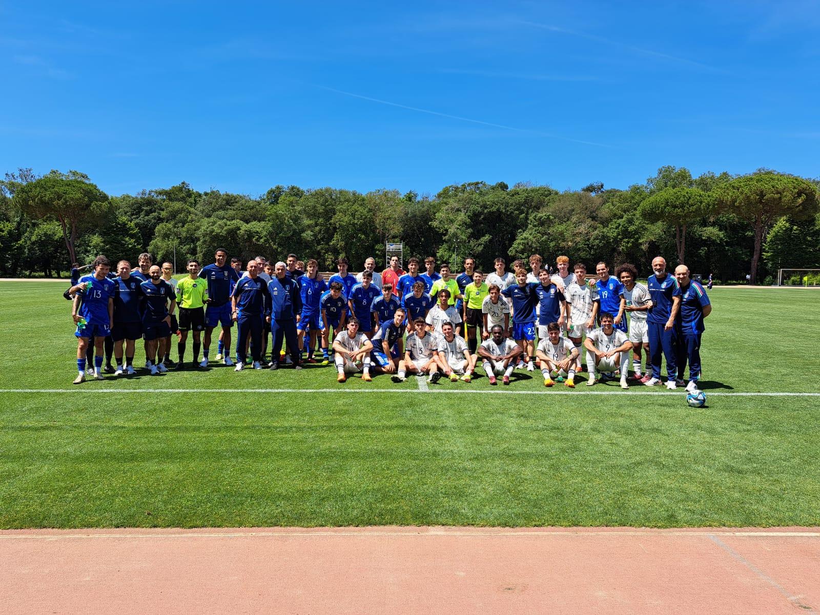 AMICHEVOLE IN FAMIGLIA. Un obiettivo che in questo momento ha ancora i contorni del sogno, ma che inizia a prendere forma nei cuori e nei pensieri dei ragazzi di Corradi. La spinta arriva ‘da sotto’, proprio dai più piccoli, da quel gruppo dell’Under 17 che in maniera incredibile, trascinato da un Camarda sontuoso, eletto a furore di popolo miglior giocatore della competizione cipriota, è salito ieri sera sul tetto d’Europa con un cammino perfetto. Sfatato il tabù della vittoria di un Europeo che era sempre sfuggita all’Under 17 (primo successo dopo le finali perse nel 2013, 2018 e 2019), perché non provare a buttarne giù un altro? Come detto, l’Italia Under 19 non si è mai imposta per due anni consecutivi all’Europeo e la vittoria di Limassol si può trasformare in ulteriore carburante per alimentare le speranze e la fame degli Azzurrini. Lo sa bene Corradi, che questa mattina a Tirrenia ha guidato i suoi ragazzi nell’amichevole in famiglia contro l’Under 20 di Bollini. Una partita che ha visto Lipani e compagni imporsi per 4-0: l’Under 19 è passata in vantaggio al 4’ con la rete di Alphadjo Cissé dell’Hellas Verona, per poi trovare il raddoppio col rigore del bolognese Tommaso Ebone al 17’. Nella ripresa è stato Diego Sia del Milan a trovare la doppietta personale (14’ e 24’) chiudendo il test con una vittoria confortante.