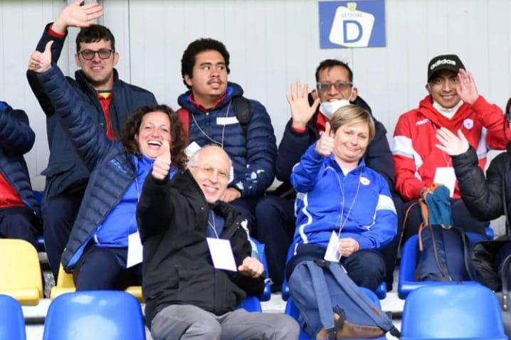 È stata una domenica di tifo e grande divertimento per la Blue Star, la squadra adottata nel mese di gennaio dal Monterosi Tuscia FC nei campionati della Divisione Calcio Paralimpico e Sperimentale per la stagione 2021/2022. Gli atleti della Società DCPS, infatti, sono stati ospiti del Club biancorosso allo stadio comunale Enrico Rocchi di Viterbo in occasione di Monterosi-Latina, nell’ultimo impegno di campionato di Serie C girone C.