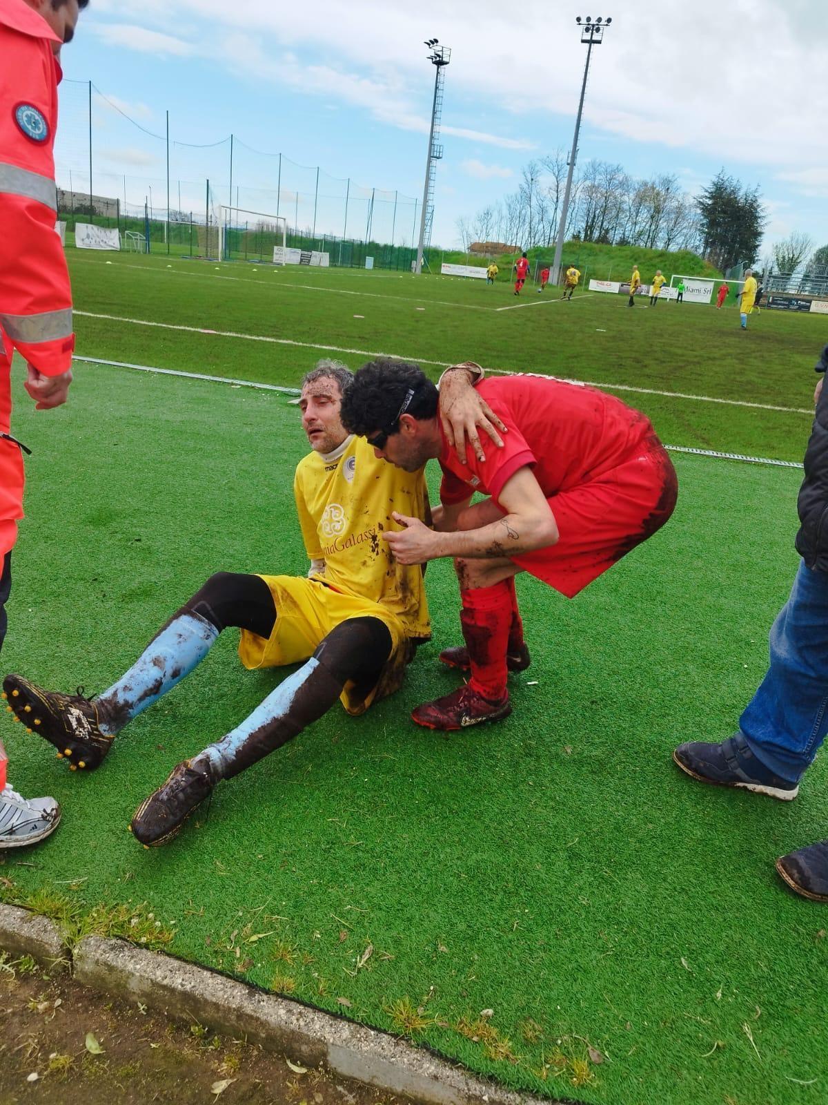 Torneo interregionale Umbria-Marche, Secondo Livello: match valido per la Competizione nazionale DCPS 'Il calcio è di Tutti'. Sabato 29 marzo, al campo sportivo comunale Villa San Filippo di Monte San Giusto (provincia di Macerata), si sta giocando la partita tra i marchigiani dell'Anthropos e gli umbri dell'Ellera. In un normale contrasto di gioco, Carlo Corallini (Anthropos) si scontra con Daniele Pagnini (Ellera): il secondo resta a terra infortunato per il colpo fortuito ricevuto all'altezza del ginocchio destro.