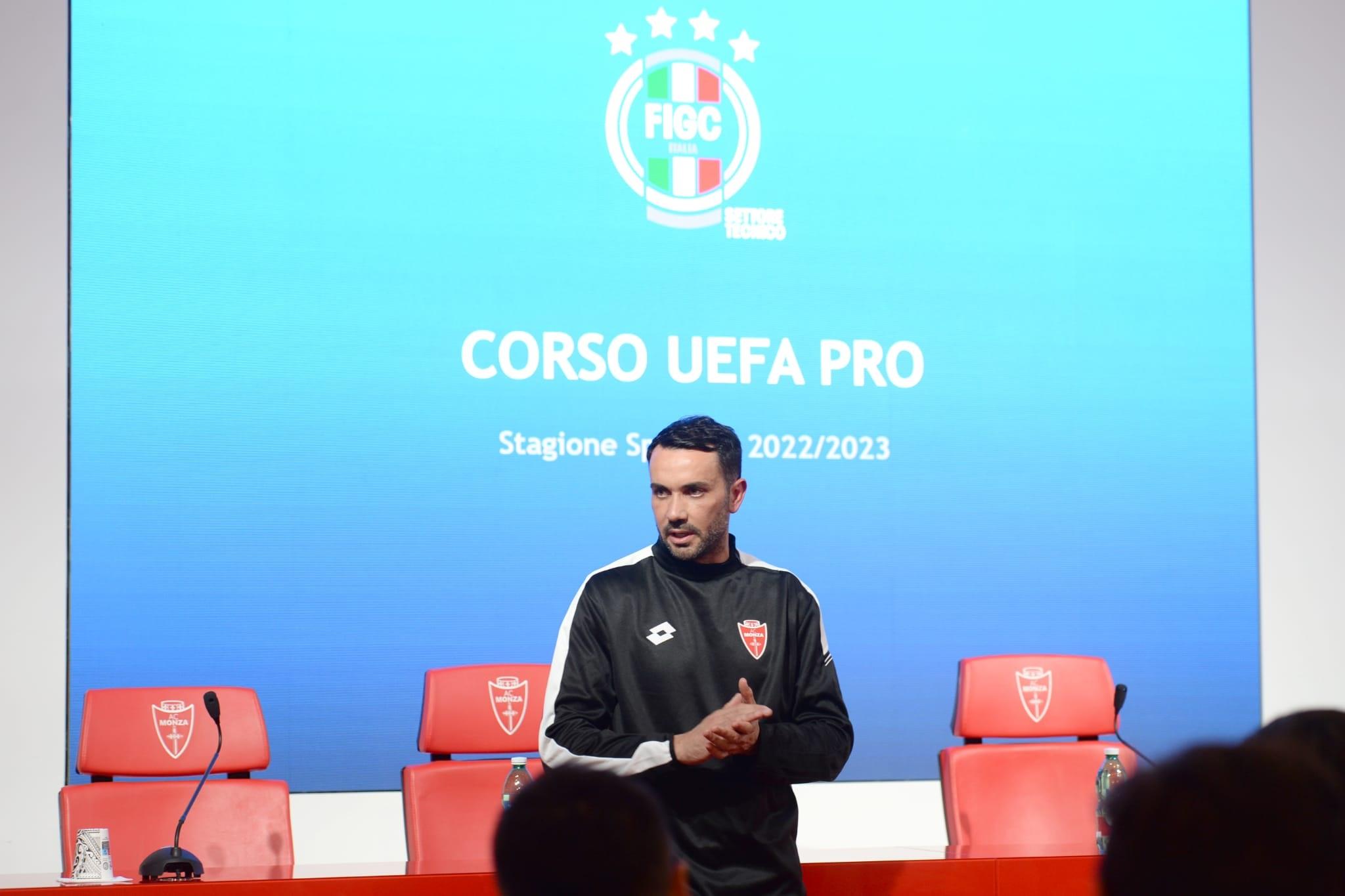 Due giorni immersi nell’ambiente lavorativo brianzolo, tra lo stadio e il centro sportivo ‘Luigi Berlusconi’, per vedere in prima persona le sedute di allenamento di una delle grandi rivelazioni di questo campionato di Serie A e per confrontarsi direttamente con lo staff tecnico del Monza. Padrone di casa e docente per un giorno, davanti ai propri colleghi corsisti dell’UEFA Pro, Raffaele Palladino, che ha illustrato i propri pensieri e le metodologie adottate: "Noi – ha sottolineato l’allenatore del club lombardo, facendo riferimento al lavoro sul campo – crediamo nei lavori aerobici ed è per questo che alleniamo i ragazzi settimanalmente sia con la palla che senza". Nella giornata di oggi è passato a salutare i corsisti anche il vicepresidente vicario e amministratore delegato del Monza, Adriano Galliani.