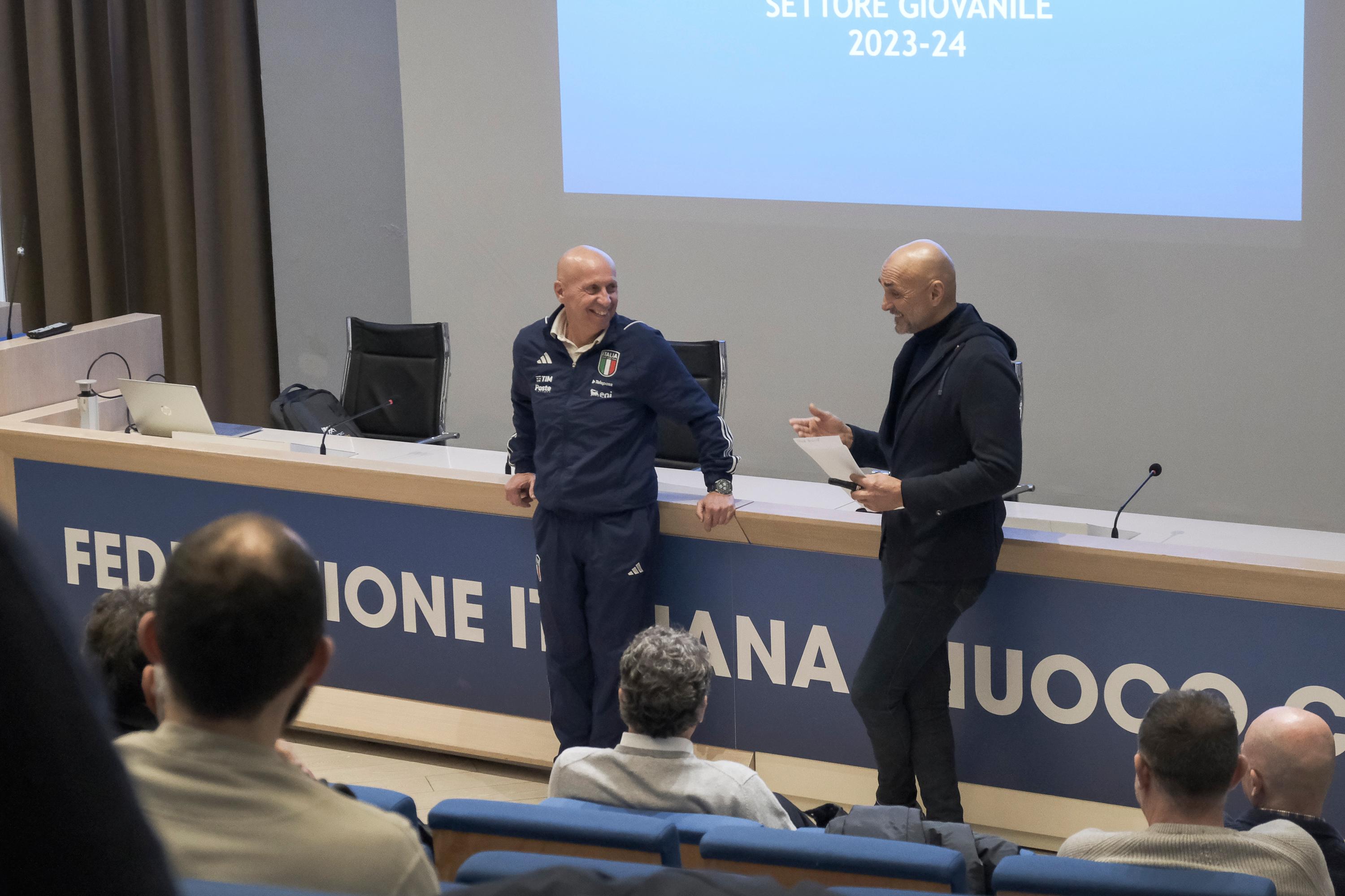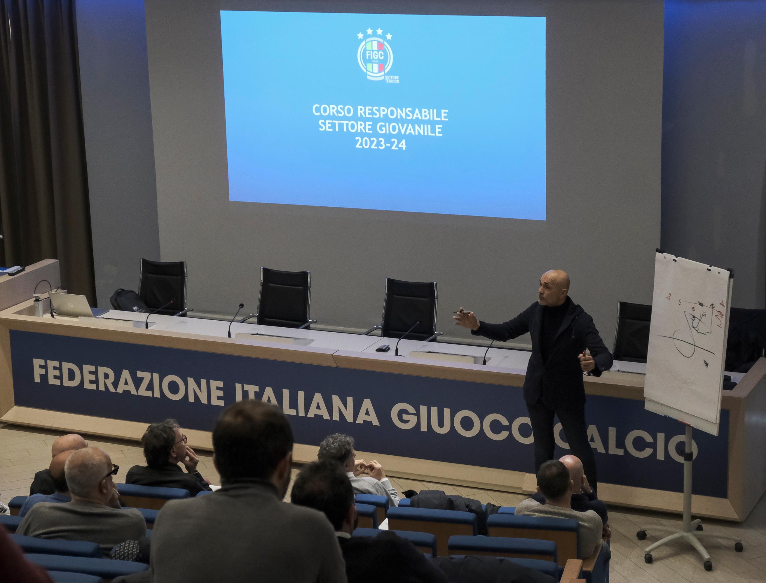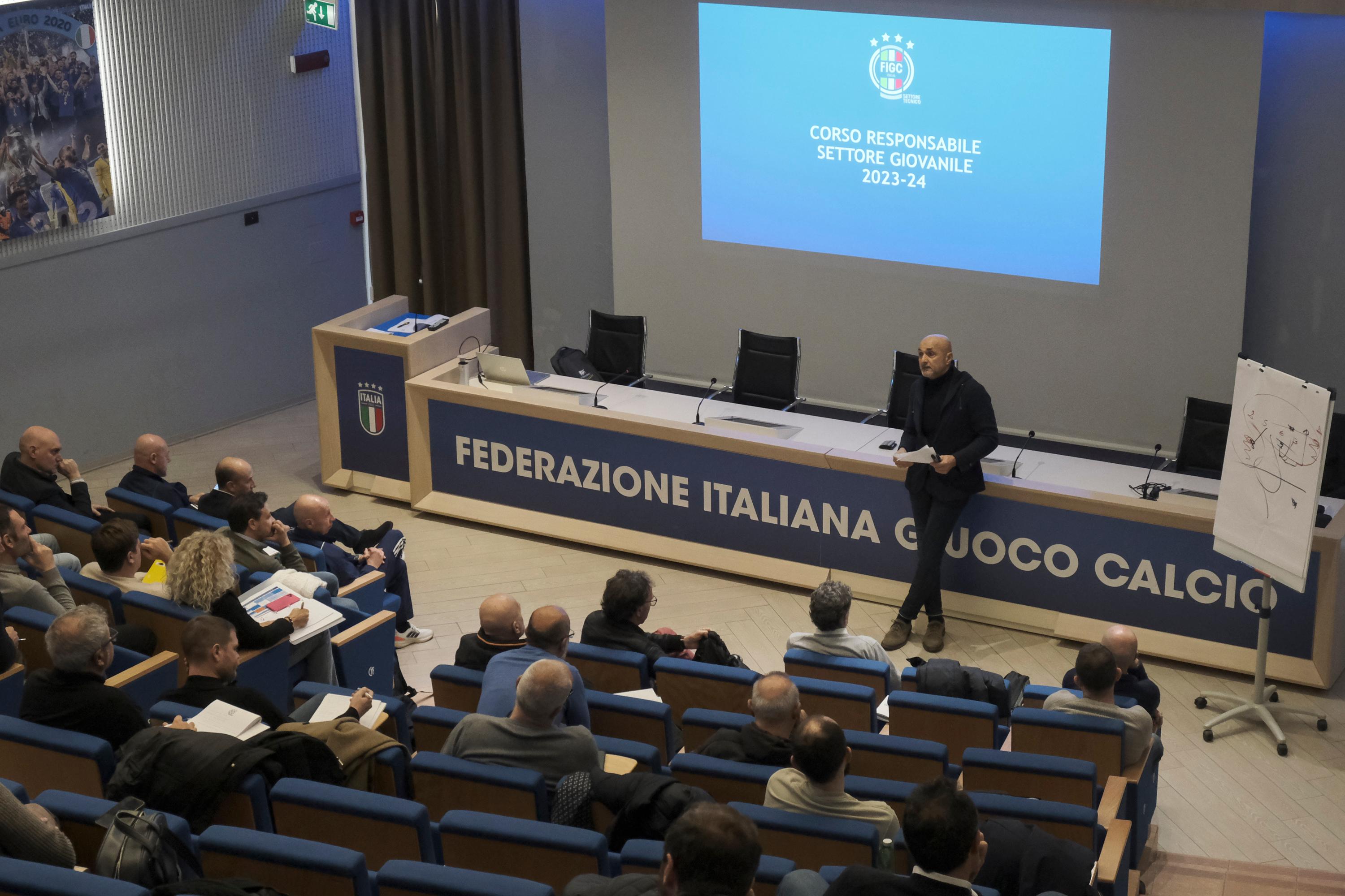 Un saluto che ha arricchito il programma didattico e che ha lasciato agli allievi molti spunti su cui discutere e riflettere: questa mattina il commissario tecnico Luciano Spalletti e il coordinatore delle Nazionali giovanili maschili, Maurizio Viscidi, sono intervenuti nell'aula magna di Coverciano al corso per Responsabile di Settore Giovanile.