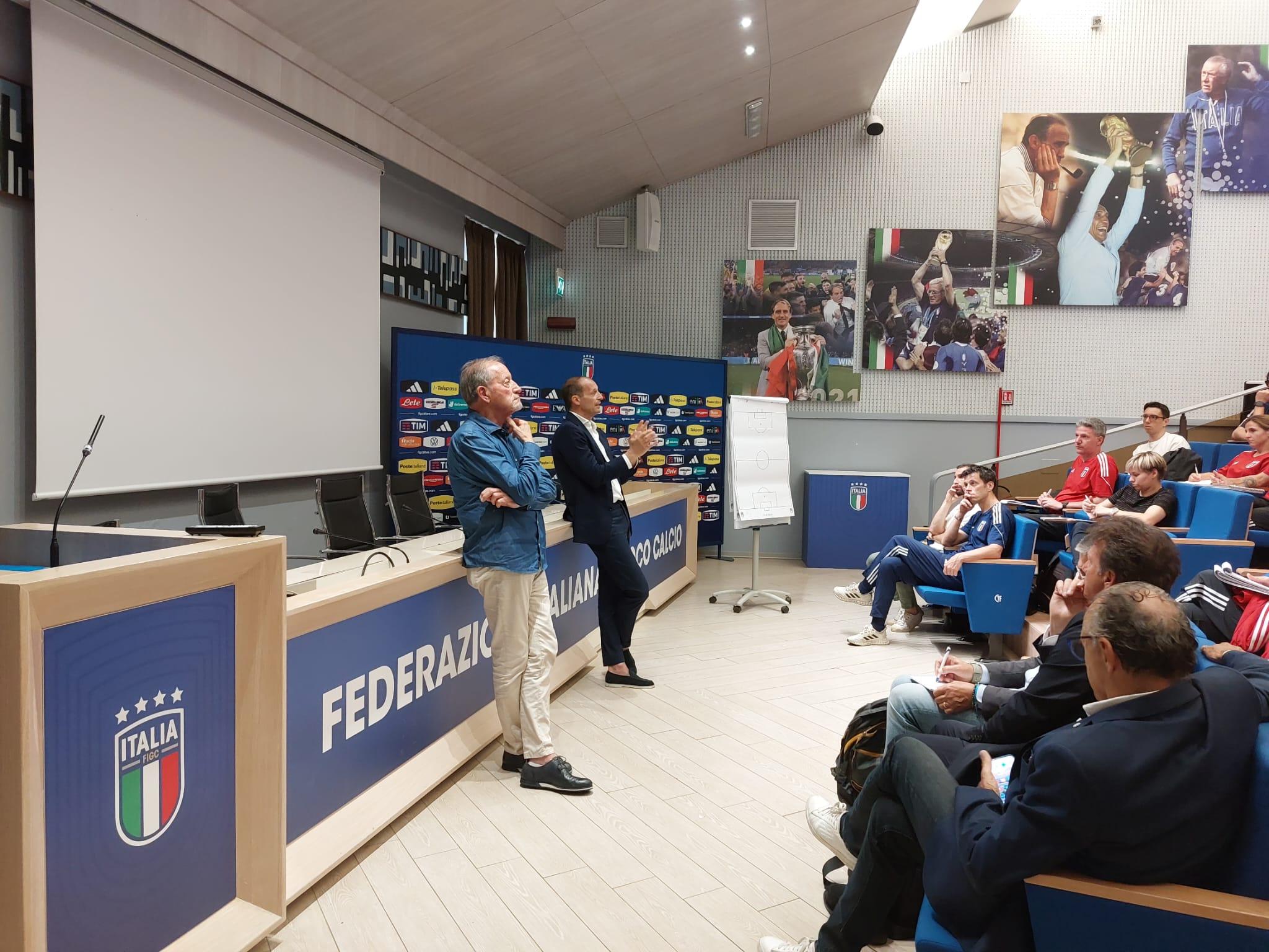 Una lezione plenaria, in un’aula magna di Coverciano riempita dagli allievi dei corsi UEFA Pro e UEFA A.