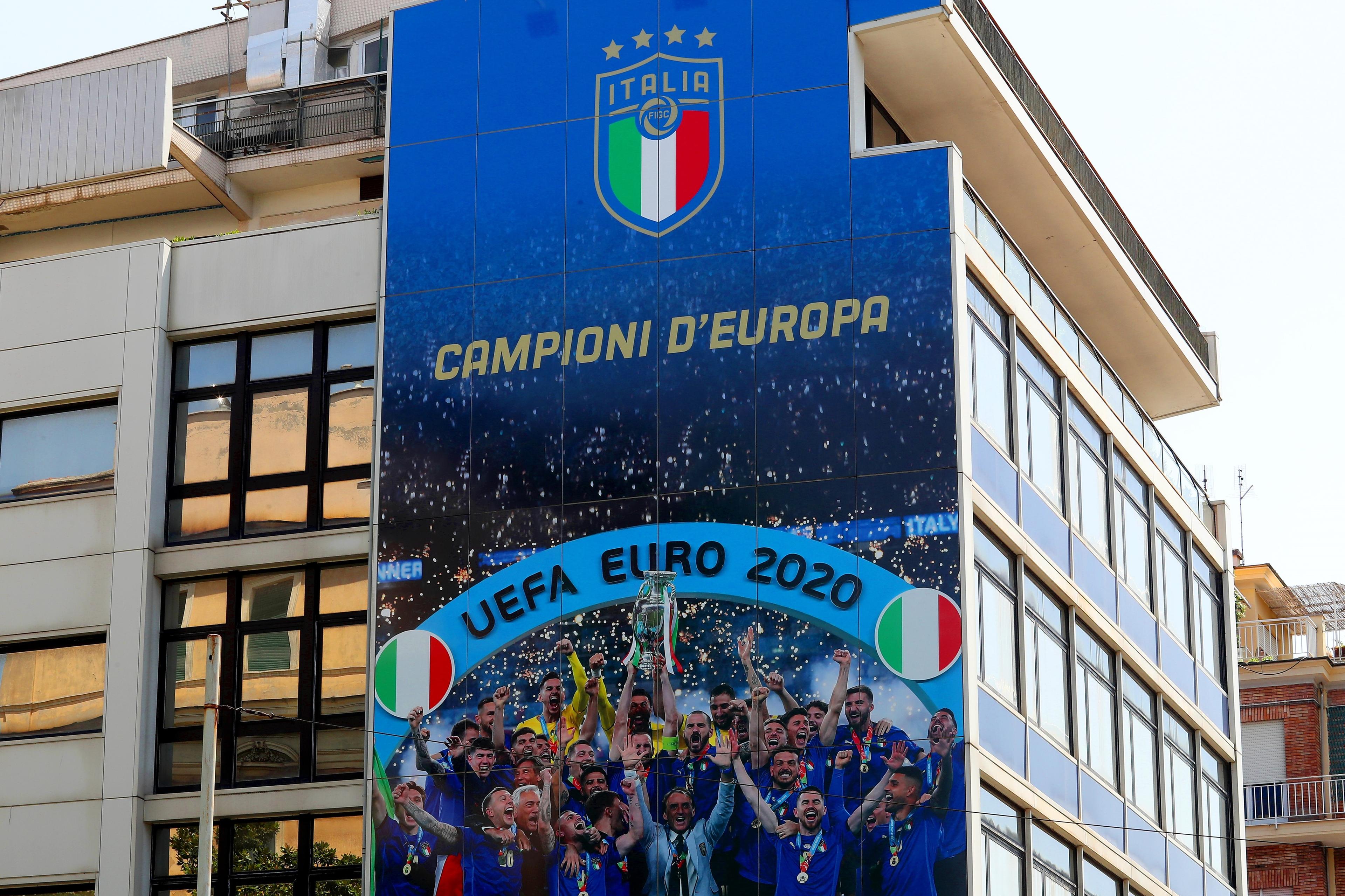 The FIGC headquarters has changesd its appearance in honour of Roberto Mancini's Azzurri. The restyling of the two facades of the historic building at via Gregorio Allegri in Rome was completed today: On the side facing Villa Borghese, the words ‘Campioni d’Europa’ (Champions of Europe) is displayed with the National Team on the podium at Wembley raising the cup to the sky in London; On the other side, visible for those arriving from via Po, a new image of Coach Milena Bertolini’s Women's National Team stands tall, launching their campaign for the European Championship scheduled for next summer in England, along with the phrase 'Road to Euro 2022'.