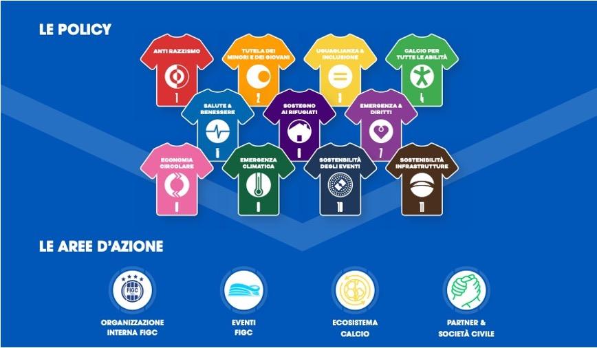 In order to further amplify the effects of the actions undertaken, in the past few months the FIGC has already launched a specific Sustainability section on the FIGC.it portal, where the UEFA and FIGC Strategies, complete documents and presentation videos are available. For each of the 11 policies identifies, there is a summary of the main projects promoted by the FIGC, by the Sectors (Technical/ Youth and Scholastic) and by the Divisions (Women’s and Paralympic - Experimental). There is a collection of news related to the different stages of development and the progress of the projects. These new items, among other things, are assigned the specific ‘shirt’ with the colour and number of the relevant policy, so that the information on sustainability issues is immediately visible.