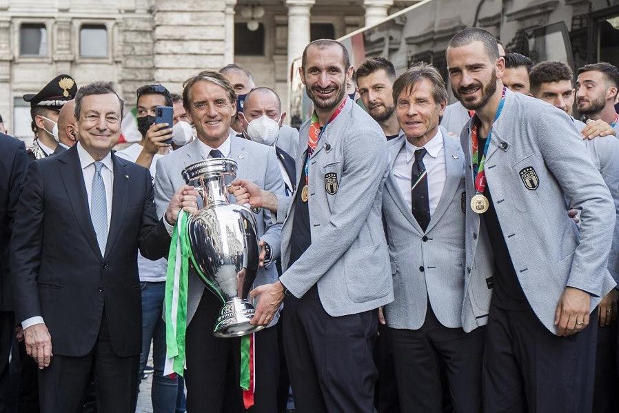 In the meantime, a coach pulled up in front of the Chigi Palace with the words ‘Campioni d’Europa’ (‘Champions of Europe’) written on it. After meeting with Draghi, the Azzurri climbed on board: "We owed this to the fans," said Bonucci. "Their support has helped us reach this point." And so Mancini’s men passed through the streets of Rome with jubilant fans celebrating with them.