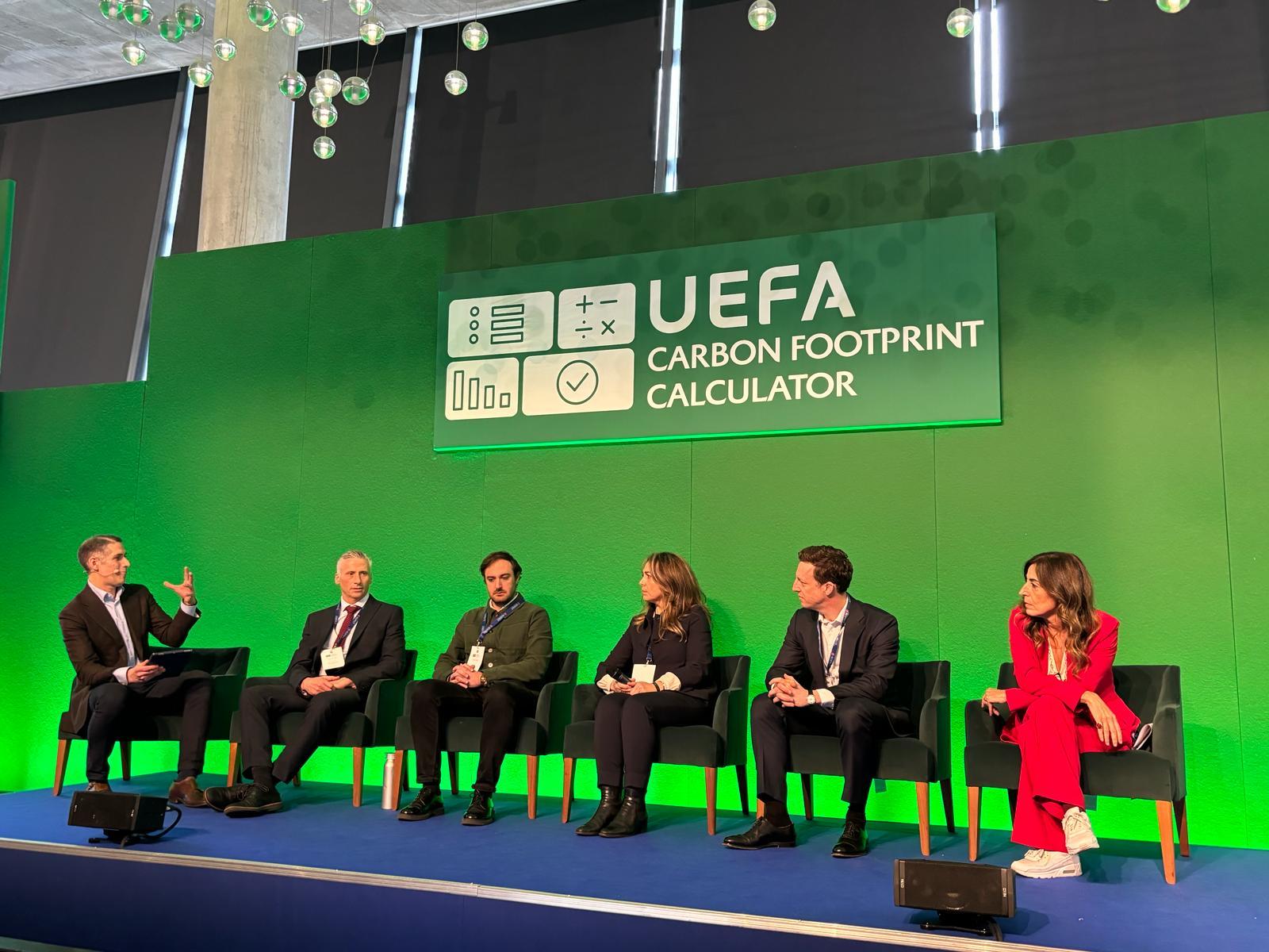 The panel organised by UEFA, including Michael Lloyd (Environmental Sustainability Manager Arsenal), Thomas Seillé (Head of Project & CSR Coordinator, French Federation), Lindita Xhaferi-Salihu (Sports for Climate Action Lead, UN Climate Change), Matous Michnevic (Vice President, ESG Lead for Europe, Mastercard) and Ariela Caglio (Director ESSEC-Bocconi Double Degree & UEFA Senior Advisor), during the workshop with the Sustainability Managers of the 55 European Associations and Club Representatives, the FIGC presented the Sustainability path that has started at the FIGC Technical Centre in Coverciano (CTF) as part of Best Practice methods. The project concerning the calculation of the carbon footprint produced by activities at the CTF, initiated by the Head of the Coverciano Technical Centre Maurizio Francini and the Sustainability Manager Cristina Blasetti and carried out together with Circularity, a Benefit Company active in the sector of environmental sustainability, is part of the environmental sustainability project underway.