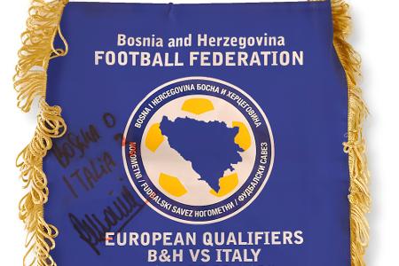 A historic relic linked to a National Team record has found a new home in the Museum of Football, which will now host the pennant received by Italy from the Bosnia and Herzegovina Football Association. The pennant has been signed by Mancini and was gifted to the Azzurri prior to their 3-0 win over Bosnia in Zenica on 15 November 2019 – a Euro qualifier success that secured a record streak of 10 straight wins for Italy.