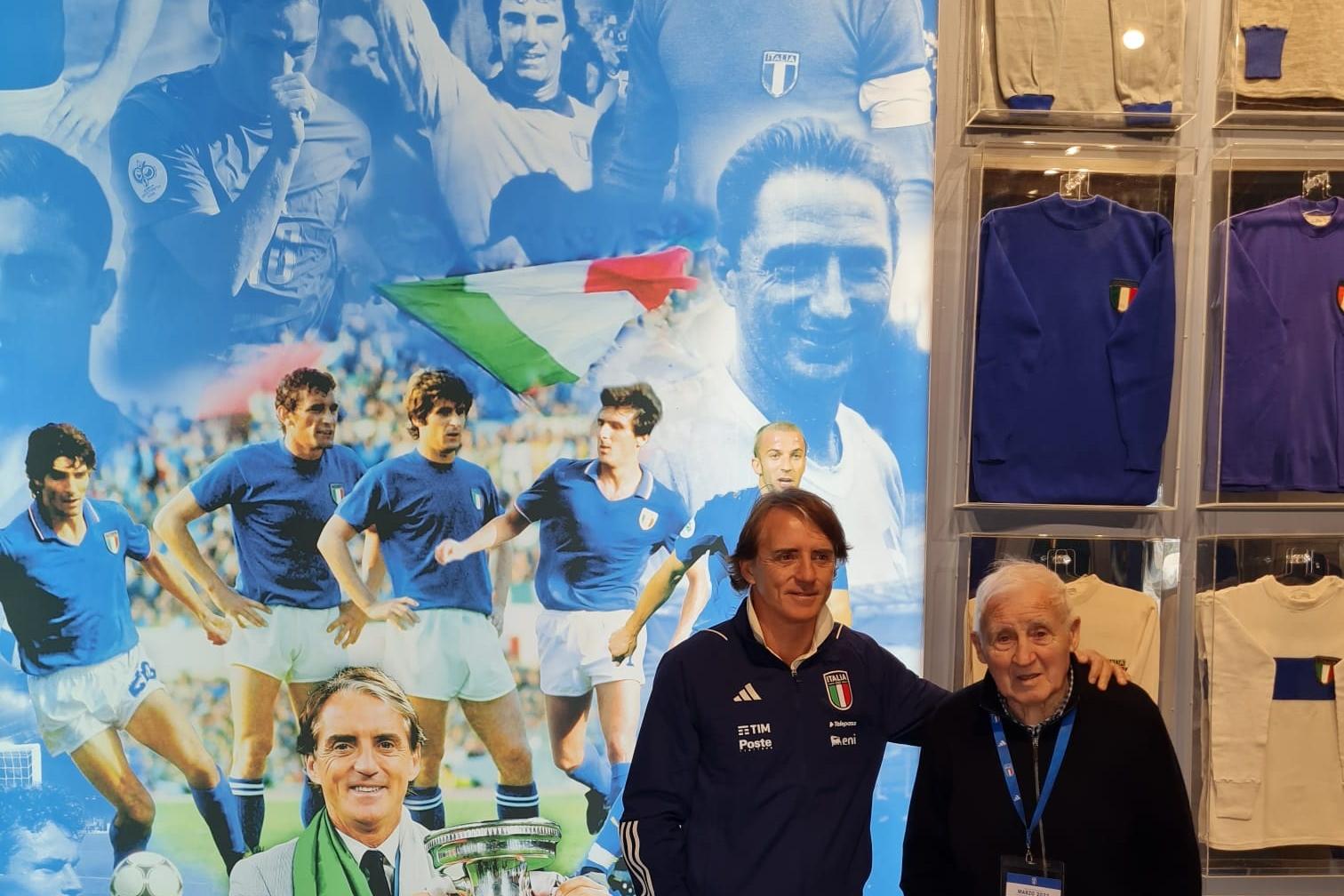 This afternoon, before the first session of the Azzurri training camp, the Italian national team coach, Roberto Mancini, accompanied a special visitor to the Football Museum: his father.