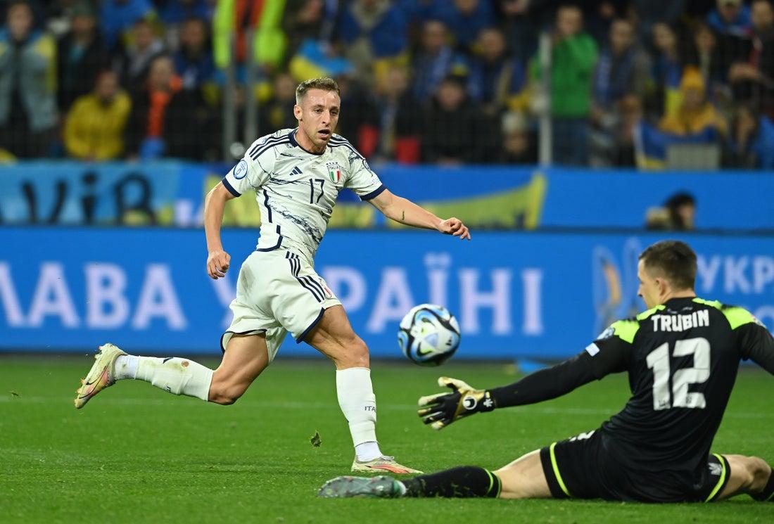 The atmosphere was rocking and the cries of ‘Italia, Italia’, rang around the stands at the BayArena, with more support there for the Azzurri than just the 1800 tickets sold out for the away sector. The tempo of the game was fast and inside five minutes the first effort on goal came from Tsygankov, with Donnarumma getting behind it comfortably. The pace of Dovbyk was causing some issues for Acerbi first and then Buongiorno, who was forced into a booking early on for stopping the Girona centre-forward's run away. In the 14th minute, Donnarumma did well to get down low to his right with a strong hand to deny Sudakov, and a minute later, at the other end, Trubin made a flying stop to keep out Barella's drive from the edge of the box. There was no waiting game for either side: on 27 minutes, Dimarco's corner found Di Lorenzo, who headed inches wide. And a minute later, Italy had the best chance to break the deadlock: Chiesa went on a surging run; he played in Frattesi, who bore down on goal but couldn't beat an onrushing Trubin. Immediately after, another great piece of play from Chiesa, following Dimarco's delightful backheel, saw him cross for Raspadori, who failed to arrive in time and the ball flashed across the face of goal. It was an attacking Italy, who were not content on playing for a 0-0 draw, with the most danger coming from Dimarco and Chiesa on the left flank. Only the goal was missing.