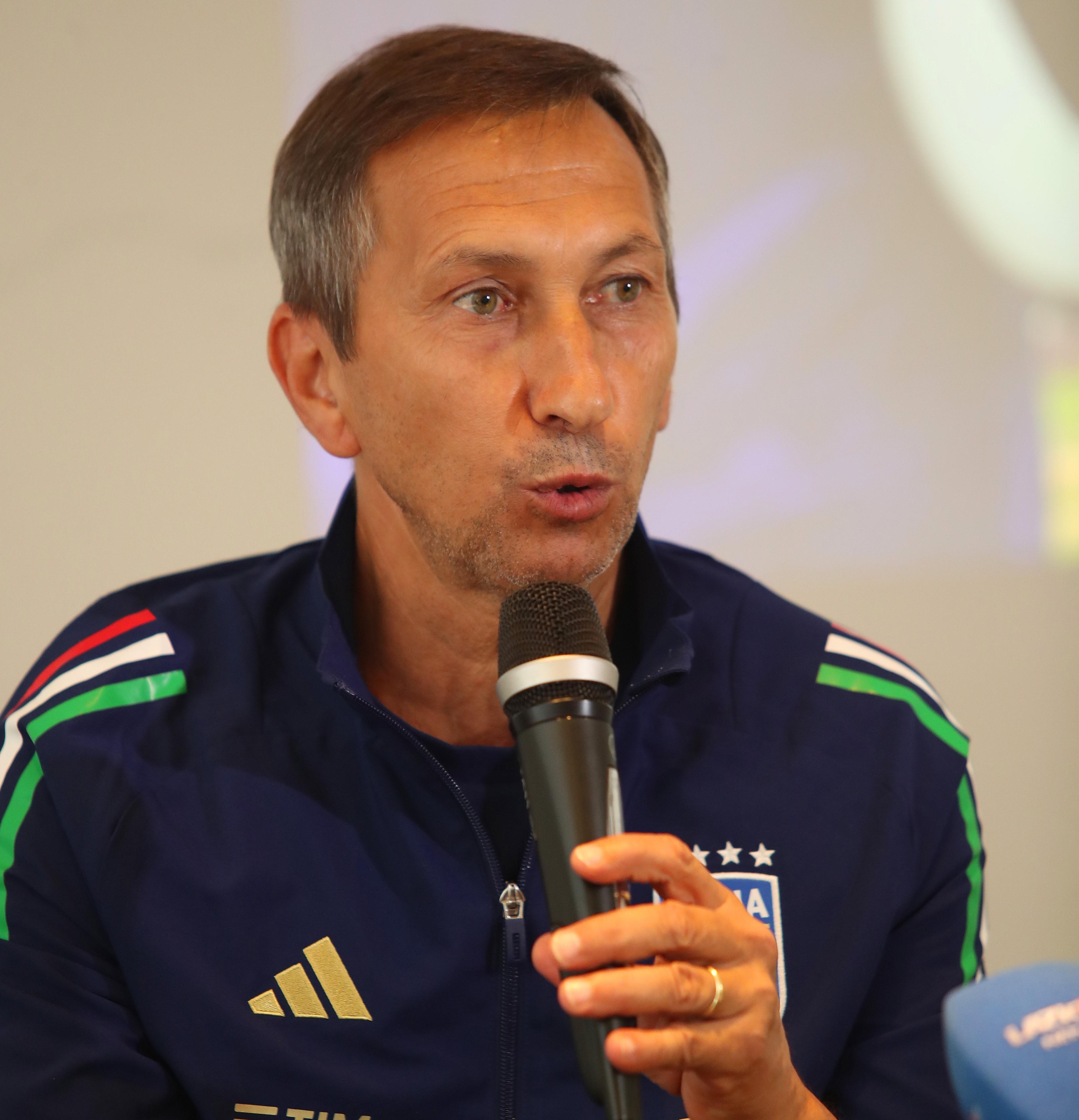 Giancarlo Antognoni, Delegation Leader of Italy Under-21: "I am very happy to be here. I left the National Team in 2016, and it was great to rejoin the family in 2024. We players from the '60s to the '80s should set an example with our behaviour because our boys already excel at playing football. At the moment the Under-21s are achieving good results and we hope to qualify for the EUROs in Slovakia. We won the Under-17 and Under-19 EUROs, and we hope to follow with the Under-21s. We represent our country when we play and the boys therefore have to represent the country on the field. We have an important task tomorrow and we are happy to be in Latina. I know Latina’s coach Pasquale Padalino well and I wish his team all the best. It is exciting to come to this city and we aspire to entertain the fans."