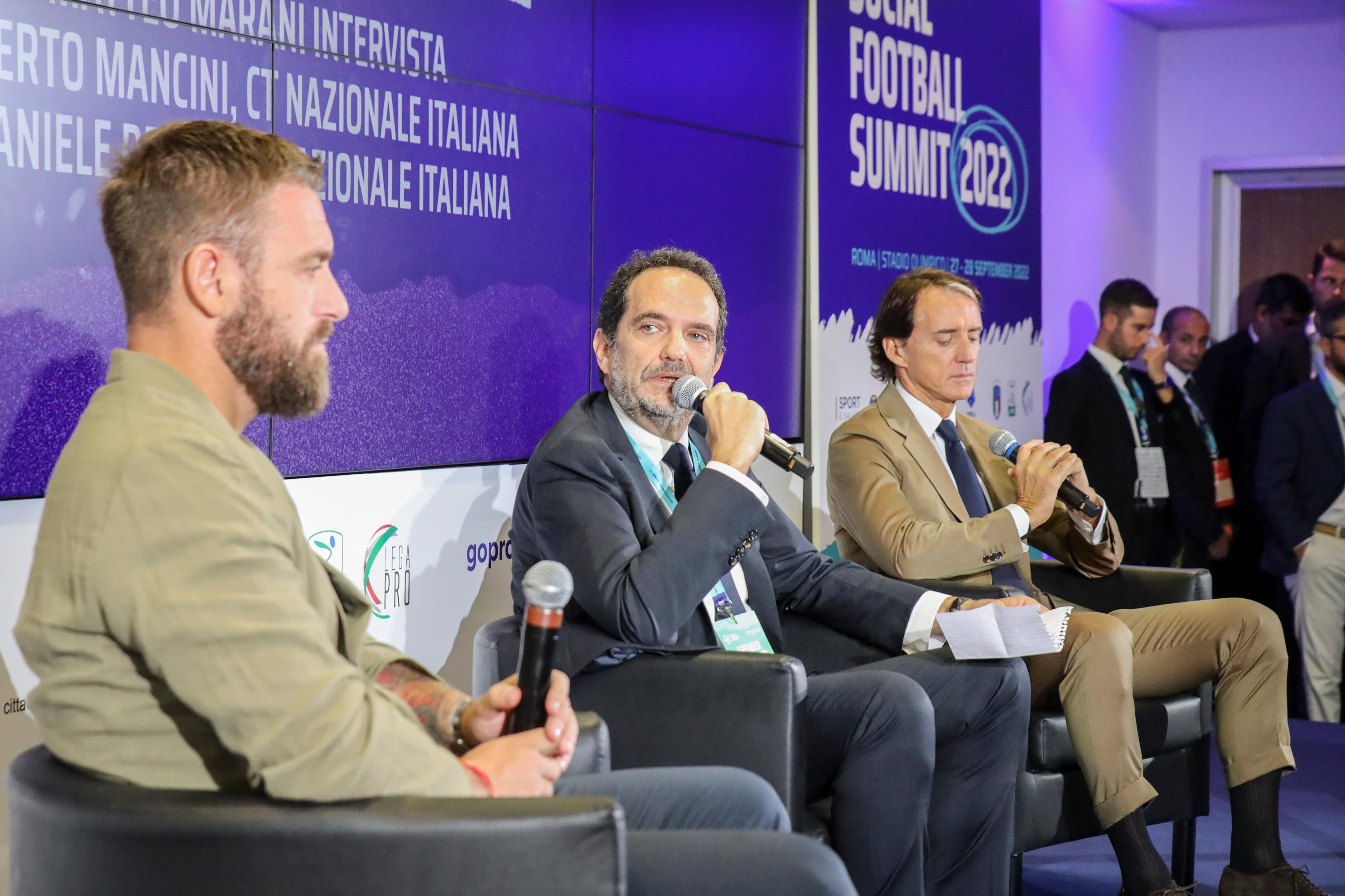 Only a few hours after sealing a place in the Nations League Final Four, Italy Head Coach Roberto Mancini and his assistant Daniele De Rossi were guests at the Social Football Summit, an event, currently taking place at Stadio Olimpico in Rome, dedicated to innovation and digital transformation in the Football Industry. Several are the themes being discussed in the panel chaired by journalist Matteo Marani, from the modernisation of football and articulating sporting news to the advent of new technologies, of social media and big data.