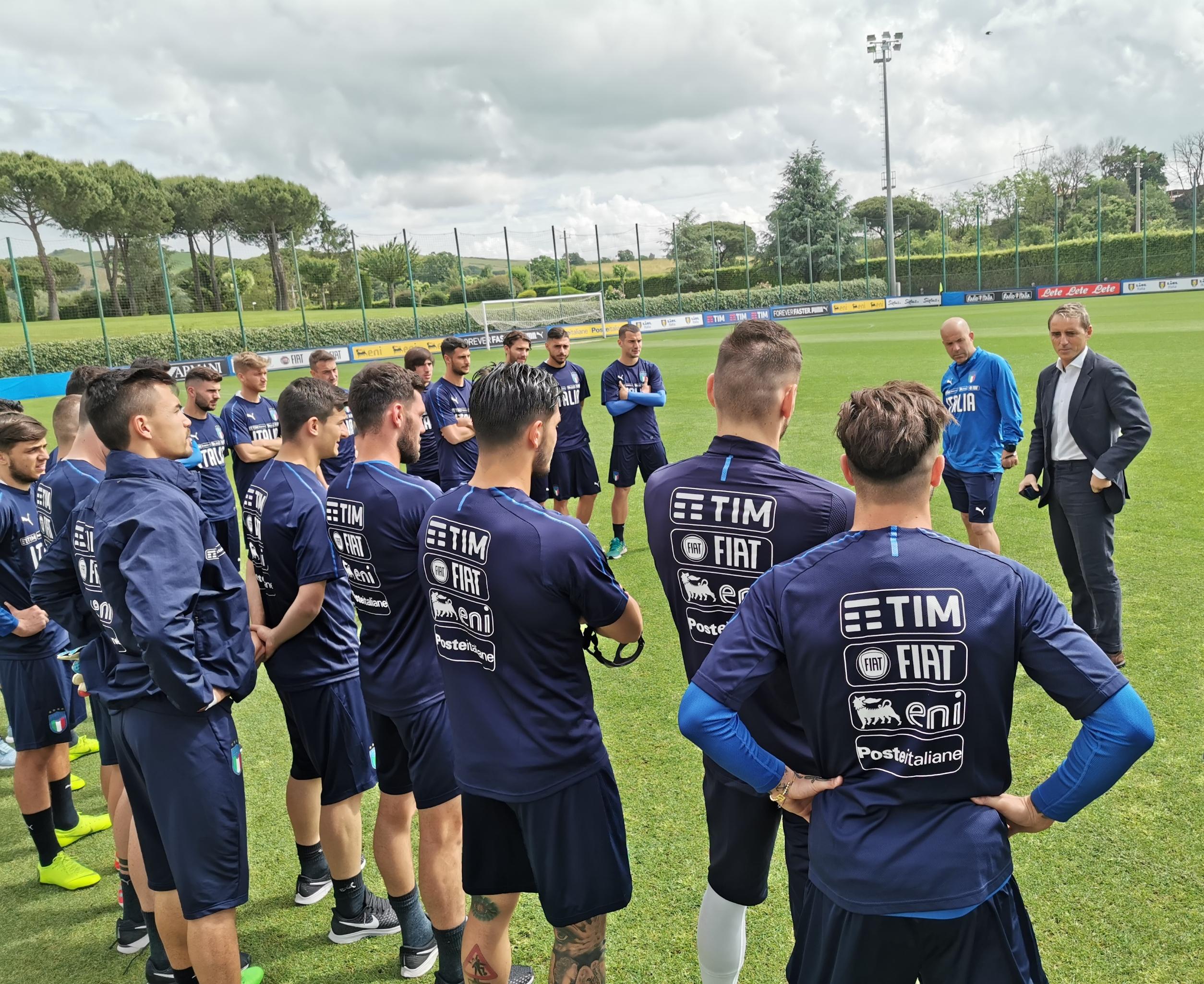 With the Italian Under-21 National Team continuing to prepare for the European Championship, a surprise was in store for the players as the Roberto Mancini, Head Coach of the National Team, paid them a visit this morning. Mancini arrived in Formello and, after spending some time with Luigi Di Biagio, greeted the squad and wished them all the best ahead of the upcoming tournament.