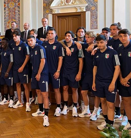 Before the event, the team and the entire staff met the Italian ambassador in Romania Alfredo Durante Mangoni and the pro-rector of the University of Babes-Bolyai Corin Braga, who received the personalised national team shirt as a gift from the head of delegation Mauro Balata. Bringing the greetings of the federal president Gabriele Gravina, Balata underlined the splendid welcome received, a thanks that was then backed up by coach Paolo Nicolato and captain Sandro Tonali.