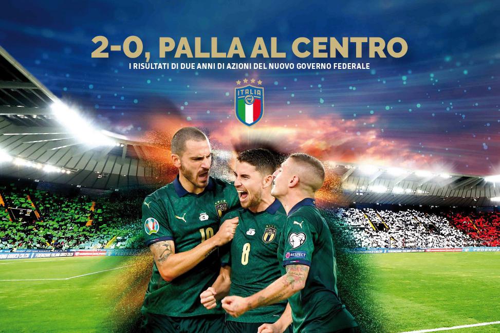 E’ stato pubblicato sul sito della FIGC ‘2-0, palla al centro’, il documento con i risultati raggiunti nei primi due anni di presidenza di Gabriele Gravina. Nelle 80 pagine del report sono riassunte le principali azioni intraprese e i risultati ottenuti dalla nuova Governance, che hanno permesso alla Federcalcio di riacquisire un ruolo centrale nel contesto politico istituzionale e in quello sportivo per poi intraprendere un ampio e strutturato processo di riforma che l’aggravarsi della crisi dovuta alla pandemia ha soltanto rallentato.