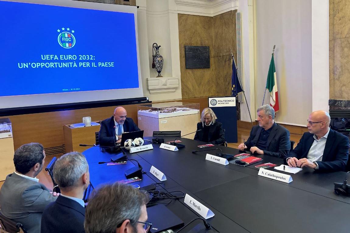 Il segretario generale della FIGC Marco Brunelli è intervenuto questa mattina al Politecnico di Milano all’incontro dal titolo ‘EURO 2032. Un'opportunità di innovazione per la cultura, l'economia, l'ambiente’, organizzato nell’ambito del Master Internazionale in Sport Design and Management.