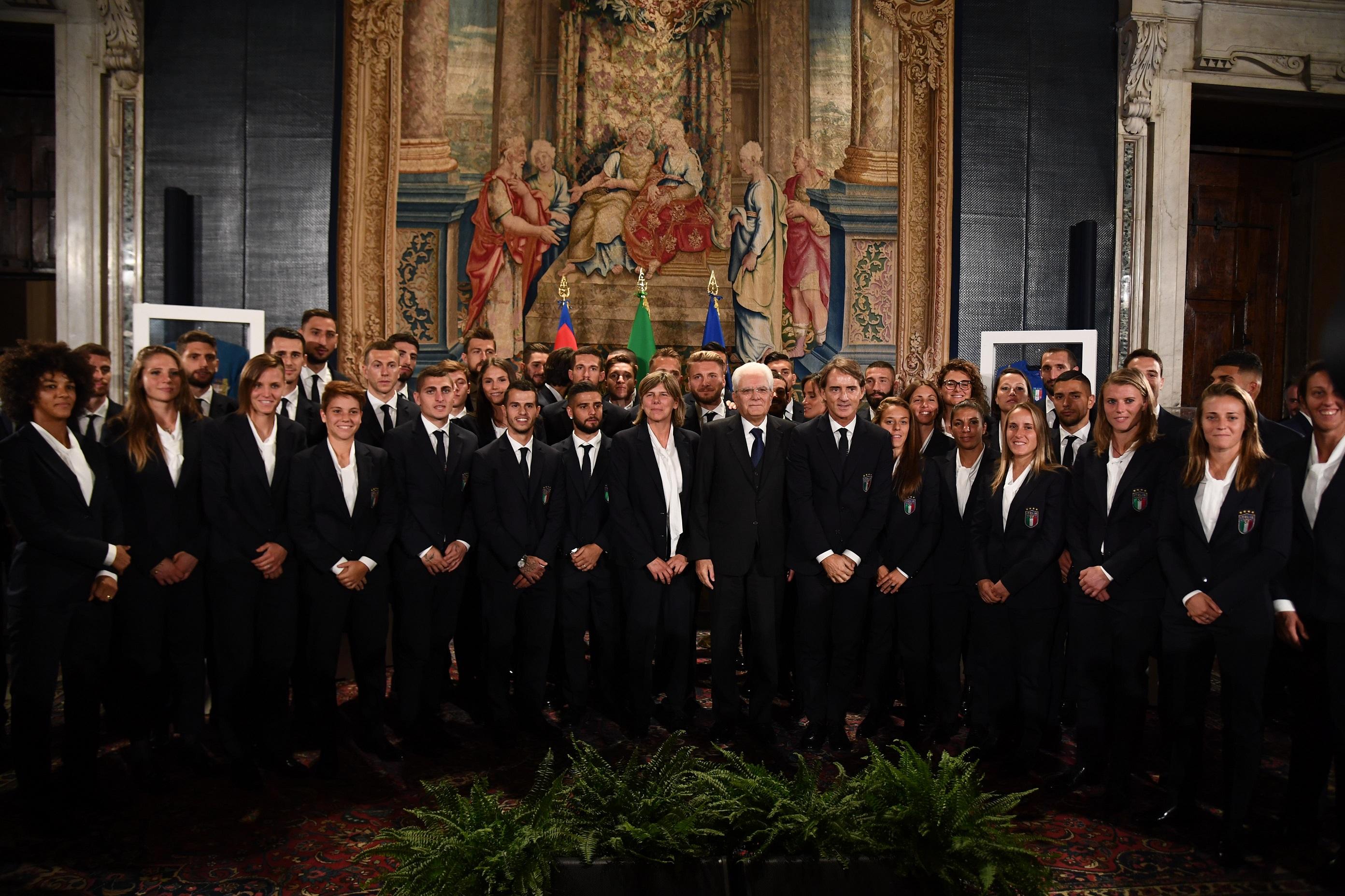 Possono quindi sorridere gli Azzurri al cospetto del presidente della Repubblica, così come le ragazze della Nazionale femminile, capaci di raggiungere la qualificazione al Mondiale a vent’anni di distanza dall’ultima volta. La speranza per tutti loro è alzare un trofeo da festeggiare con i tifosi italiani, ripetendo un copione già recitato dai Campioni d’Europa del 1968 e dai Campioni del Mondo del 1982 e del 2006: da Dino Zoff a Gigi Buffon, da Gianni Rivera ad Andrea Pirlo, al Quirinale ci sono molti dei protagonisti delle pagine più belle scritte dalla Nazionale. In platea anche il Ct e il capitano della Nazionale di Beach Soccer fresca Campione d’Europa, Emiliano Del Duca e Francesco Corosiniti, e i Ct della Nazionale maschile e femminile di Futsal, Roberto Menichelli e Francesca Salvatore.