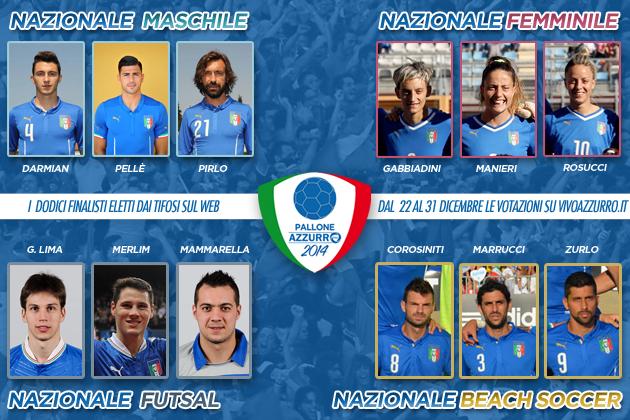 Gli altri finalisti saranno Gabbiadini, Manieri e Rosucci per la Nazionale Femminile, G. Lima, Merlim e Mammarella per la Nazionale di Futsal, Corosiniti, Marrucci e Zurlo per la Nazionale di Beach Soccer. Da lunedì su www.vivoazzurro.it prenderà il via la votazione per l’assegnazione del ‘Pallone Azzurro 2014’ (per vedere tutti i risultati del sondaggio clicca qui).
