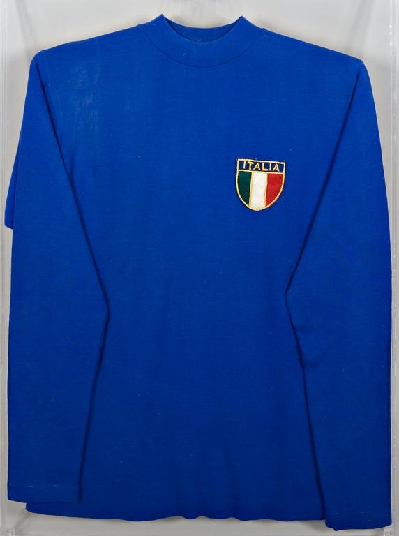 Nella foto la maglia custodita nel Museo del Calcio di Coverciano indossata da Boniperti in occasione del successo per 3-0 dell’Italia sul Brasile nell’amichevole disputata il 25 aprile 1956 a Milano